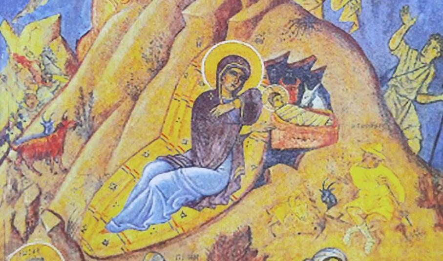 Κάθεται η Κυρά μας η Παναγιά.