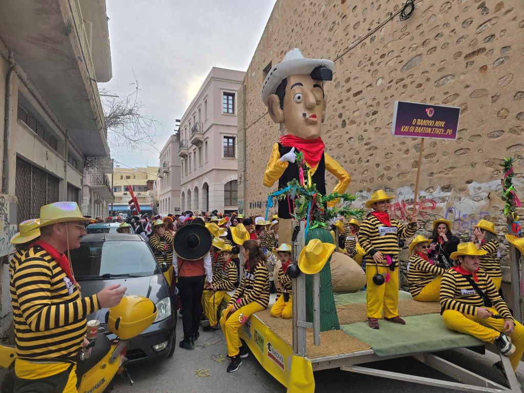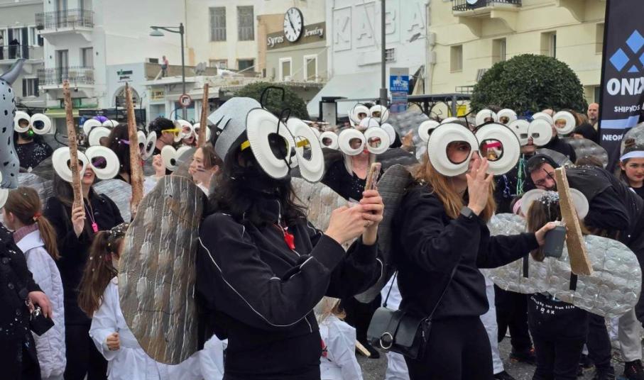 Μία παρέλαση εμπλουτισμένη με άρματα, φανταχτερές κατασκευές και ευφάνταστες φορεσιές, που πραγματοποιήθηκε στο κέντρο της Ερμούπολης.