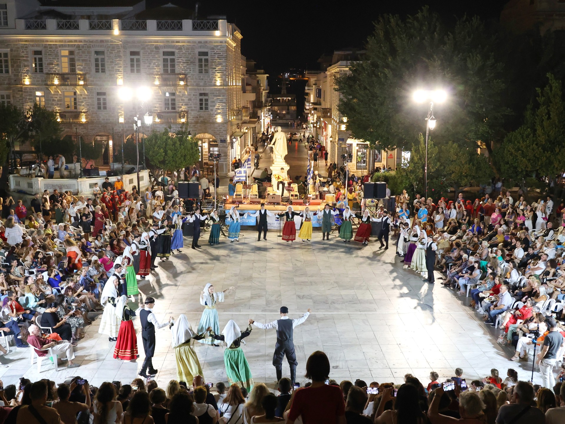 Την ίδια ημέρα στις 7 και μισή το απόγευμα θα κηρυχθεί η έναρξη του Φεστιβάλ με την παρέλαση των χορευτικών ομάδων στην παραλία της Ερμούπολης, ενώ μισή ώρα αργότερα, δηλαδή στις 8 το βράδυ, θα λάβει χώρα η έναρξη του χορευτικού μέρους με τη συμμετοχή χορευτικών ομάδων νέων.