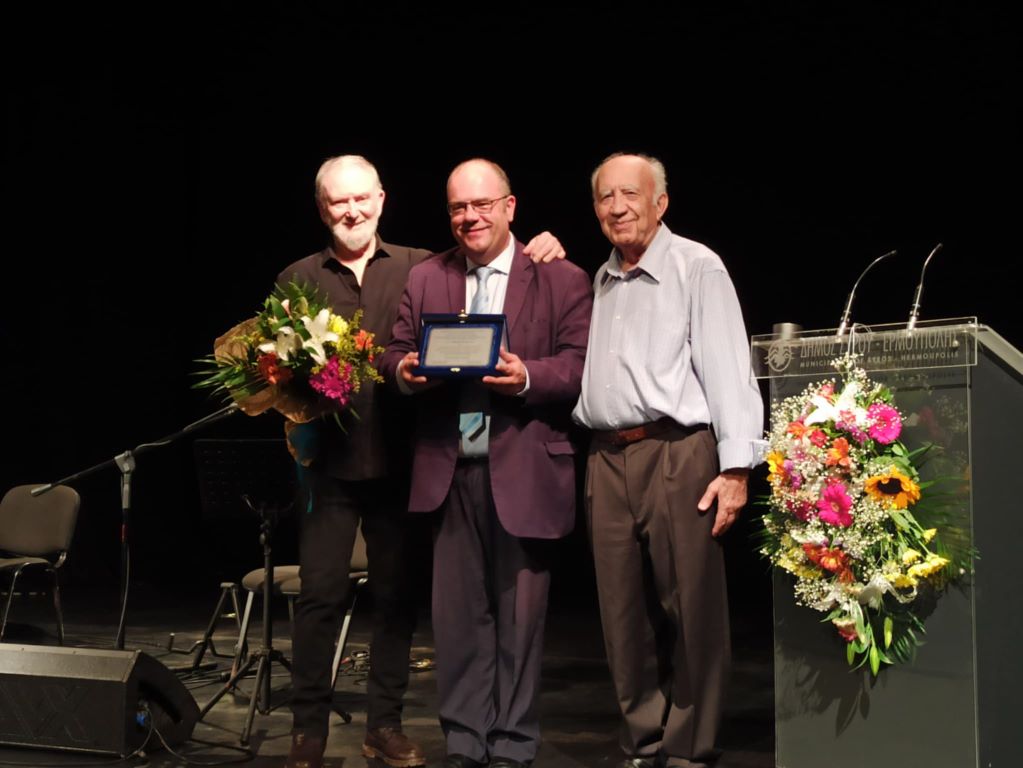 Η τιμητική βράβευση έγινε στο κατάμεστο από κόσμο θέατρο Απόλλων, από τον Μπάμπη Κουλούρα, πρόεδρο του Πολιτιστικού Συλλόγου Άνω Σύρου και τον δήμαρχο Σύρου - Ερμούπολης, Αλέξη Αθανασίου, με τον τιμώμενο να δηλώνει, μεταξύ άλλων, ότι η ομάδα των "Συριανών Γραμμάτων" προετοιμάζει την έκδοση εγκυκλοπαίδειας αφιερωμένη στη Σύρο.