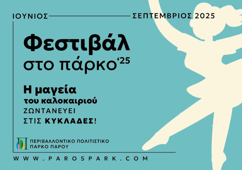 Η μαγεία του καλοκαιριού ζωντανεύει και φέτος στις Κυκλάδες, με το Φεστιβάλ στο Πάρκο της Πάρου, να υπόσχεται μοναδικές καλοκαιρινές βραδιές, γεμάτες μουσική, χορό, θέατρο, κινηματογραφικές ταινίες και ντοκιμαντέρ