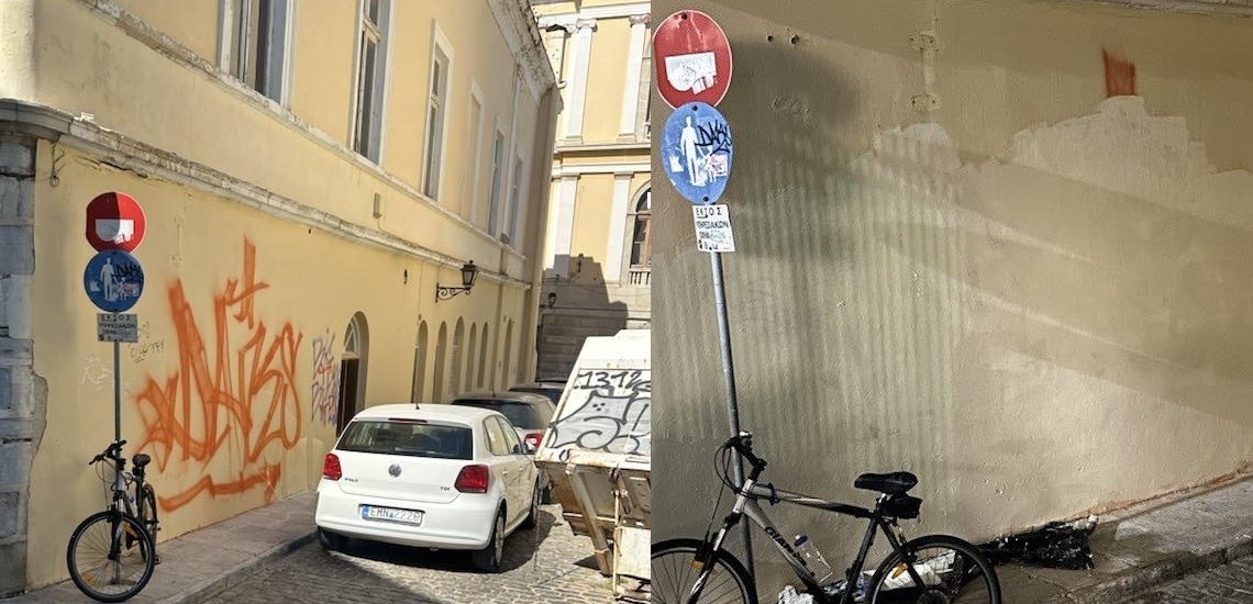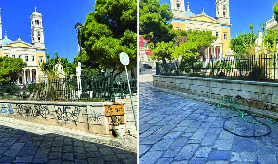 Δεκάδες εθελοντές, στηρίζουν και εργάζονται εθελοντικά για τον καθαρισμό και την αποκατάσταση ελαιοχρωματισμών επιφανειών που έχουν πληγεί από τα γκράφιτι στο κέντρο της Ερμούπολης, με το αποτέλεσμα μέχρι στιγμής να είναι εντυπωσιακό.