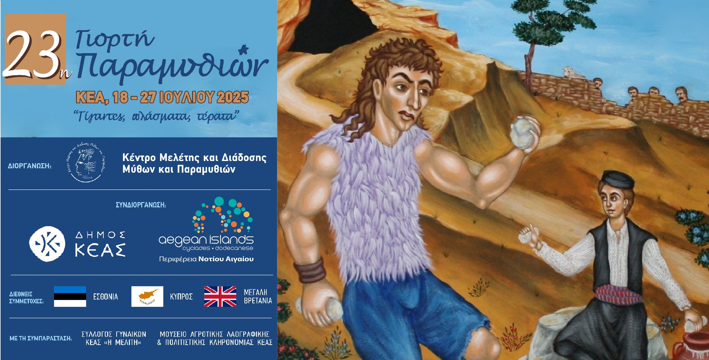 Συγκεκριμένα, από τις 18 έως τις 27 Ιουλίου, η Γιορτή Παραμυθιών απλώνεται στο νησί σαν ανάσα αρχαία και ζωντανή, για να θυμίσει πως το παραμύθι είναι πάντα παρόν και πάντα αληθινό, με τη φετινή του θεματική να περιστρέφεται γύρω από τους γίγαντες, τα πλάσματα και τα τέρατα.