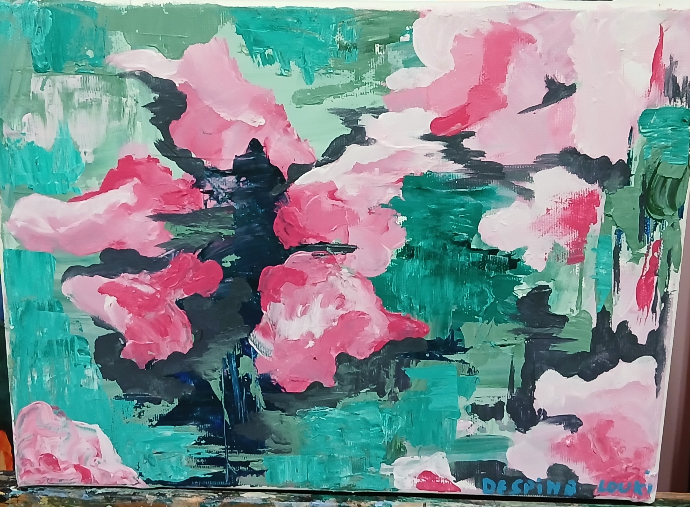 Από τα πρώτα της βήματα στην απεικονιστική ζωγραφική έως τη σημερινή της έλξη προς την αφαίρεση, η διαδρομή της είναι γεμάτη χρώμα, ελευθερία και ειλικρίνεια. Προτιμά έντονες παλέτες και αυθόρμητες γραμμές, αφήνοντας τον πίνακα να εξελιχθεί οργανικά, μέσα από παρατήρηση, μνήμη και συναίσθημα. Άλλοτε καταγράφει τα τοπία γύρω της με ποιητική ακρίβεια, κι άλλοτε αφήνεται στην αφαίρεση, αφήνοντας τη φόρμα να υπαινιχθεί όσα δεν λέγονται με λέξεις.