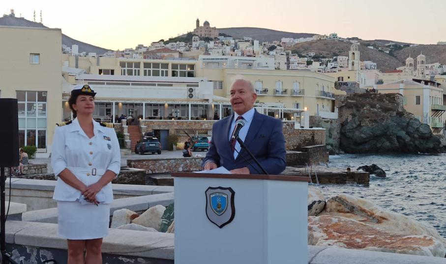 Τέλος, φέρνοντας ως παράδειγμα την Ακαδημία Εμπορικού Ναυτικού της Σύρου και απευθυνόμενος προς την διοικήτρια της, Κωνσταντίνα Κορακά και υπογραμμίζοντας ότι "η ιστορική της διαδρομή συνδέεται με την πολυετή ναυτική παράδοση του νησιού και την ανάγκη για εκπαίδευση στελεχών του εμπορικού μας ναυτικού. Η ίδρυσή της αποτελεί καρπό πολυετών προσπαθειών και είμαστε υπερήφανοι πράγματι για την απρόσκοπτη λειτουργία της από το 1961, έχοντας πλέον εκπαιδεύσει γενιές ναυτικών που εκπροσωπούν επάξια τη χώρα μας, σε όλη την υφήλιο", προανήγγειλε την ανάληψη δράσεων εκ μέρους του Υπουργείου, ως προς την αναδιοργάνωση και ψηφιακή αναβάθμιση της ναυτικής εκπαίδευσης.