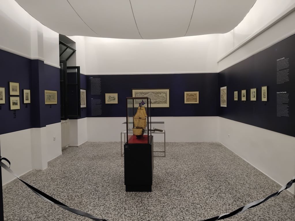 Η έκθεση "Περίπλους Νήσων χάρτες και χαρακτικά 16ος – 19ος αιώνας", φιλοξενείται στους χώρους του ιστορικού κτηρίου της Ακαδημίας Εμπορικού Ναυτικού Σύρου.