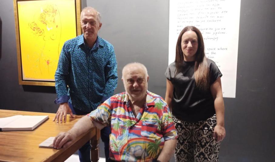 Έναν μικρό χαιρετισμό απηύθυνε προς τους παρευρισκομένους και ο ζωγράφος, ο οποίος μεταξύ άλλων, δεν παρέλειψε να εκφράσει τη χαρά του, που τα έργα του παρουσιάζονται στη Σύρο και ειδικά στον χώρο της Πινακοθήκης Κυκλάδων.