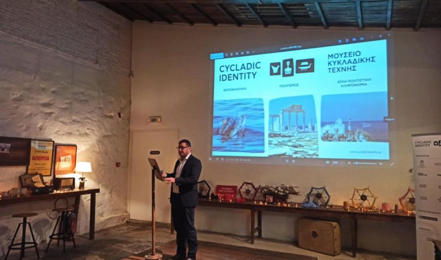 "Το Cycladic Identity είναι η πρωτοβουλία του Μουσείου Κυκλαδική Τέχνης, που έχει στόχο την προστασία της πολιτιστικής και φυσικής κληρονομιάς των Κυκλάδων και τη διατήρηση, αποκατάσταση και ανάδειξη της μοναδικής τους ταυτότητας. Με άξονες προτεραιότητας τον πολιτισμό, τη βιοποικιλότητα και την Άυλη Πολιτιστική Κληρονομιά, η πρωτοβουλία λειτουργεί ως πλατφόρμα προσέλκυσης και κατανομής πόρων σε προγράμματα τα οποία υλοποιούνται από φορείς που δραστηριοποιούνται στα νησιά", τόνισε η κα. Μαρινόπουλου.