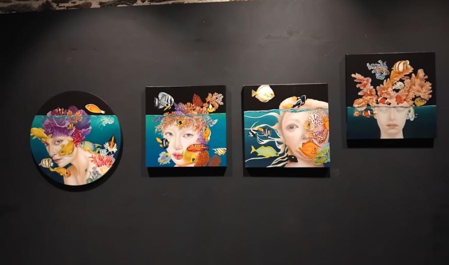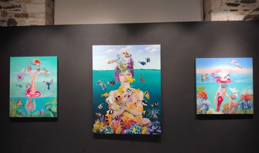 Η έκθεση "Εκεί που γεννιούνται τα όνειρα", εγκαινιάστηκε στην Πινακοθήκη Κυκλάδων το βράδυ της Τετάρτη με την παρουσία της ίδια της ζωγράφου.