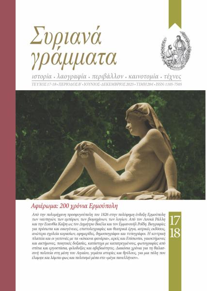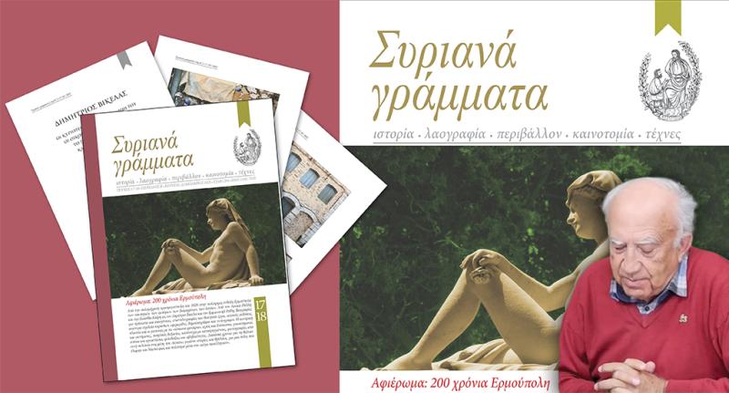 Πλούσιο σε ύλη και ιδιαίτερα ενδιαφέρον, απλώς απολαυστικό για όσους ιστοριοδιφούν περί Σύρου, κυκλοφορεί το διπλό τεύχος 17 - 18 του περιοδικού “Συριανά Γράμματα”, αφιερωμένο στα 200 χρόνια που έχουν περάσει από τη δημιουργία της Ερμούπολης, αυτή τη μικρή κοσμογονία που είχε συντελεστεί στο κέντρο του Αιγαίου.