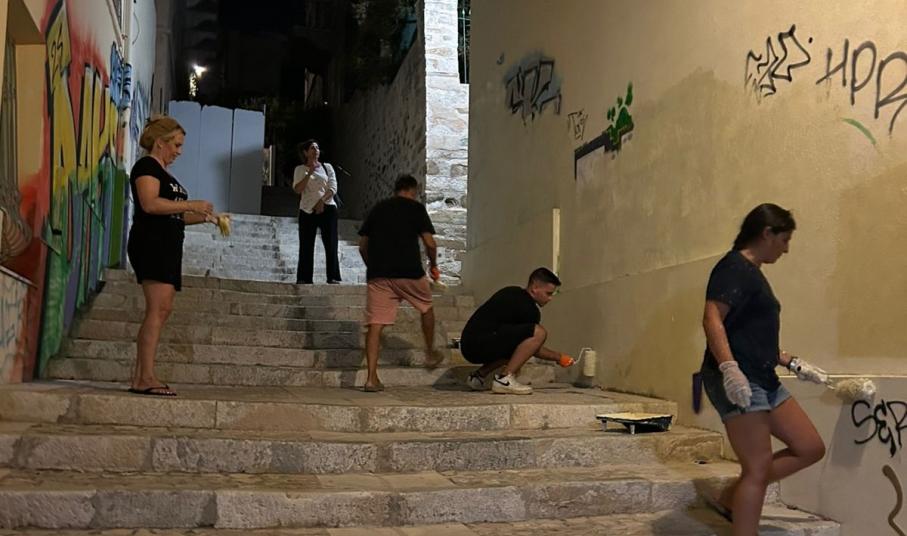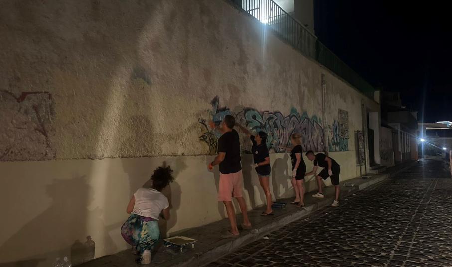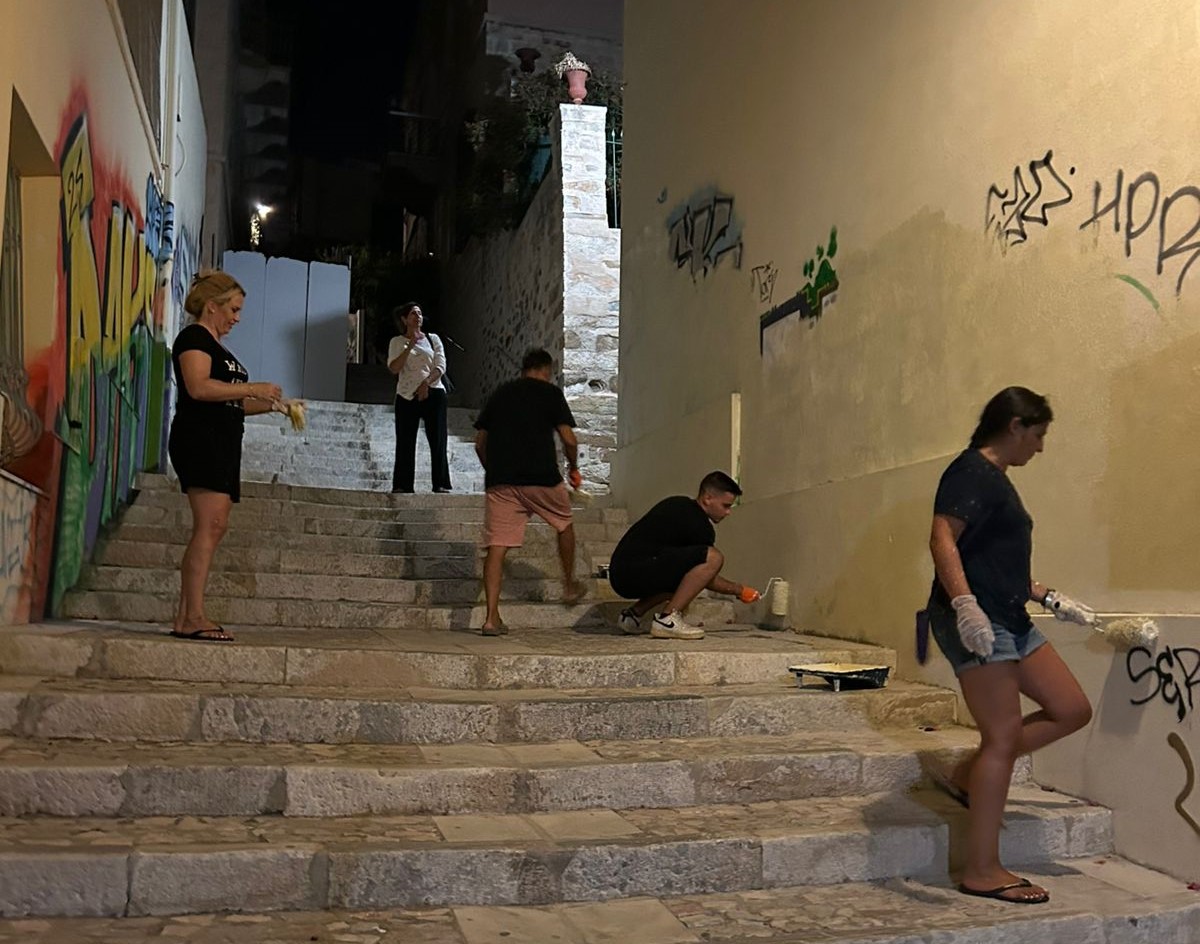 Δεκάδες εθελοντές στηρίζουν και εργάζονται εθελοντικά για τον καθαρισμό και την αποκατάσταση ελαιοχρωματισμών επιφανειών που έχουν πληγεί από τα γκράφιτι στο κέντρο της Ερμούπολης και όχι μόνο, με το αποτέλεσμα μέχρι στιγμής να είναι εντυπωσιακό.