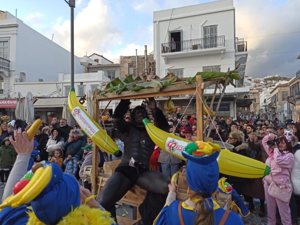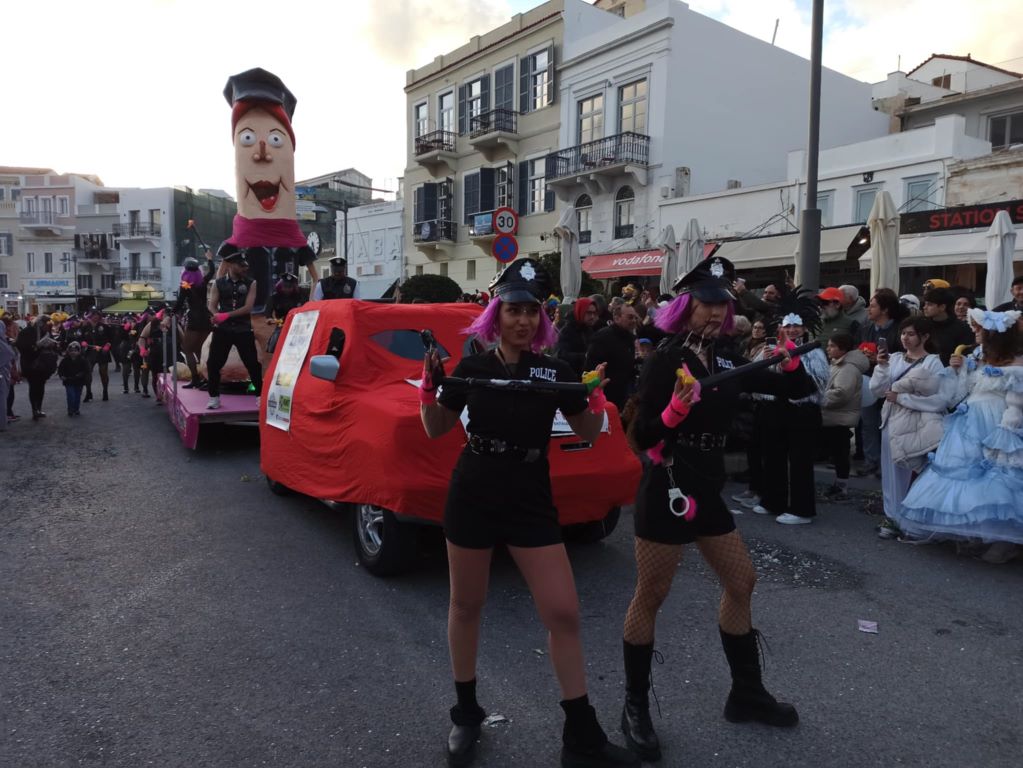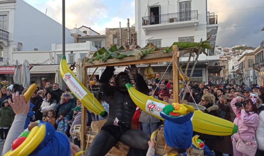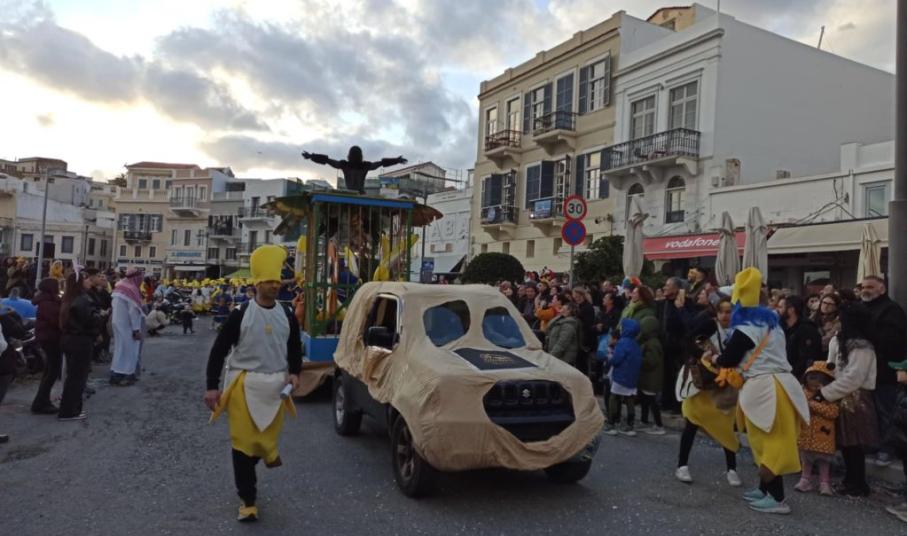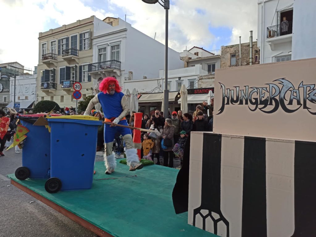 Πάνω από 1.000 καρναβαλιστές ξεχύθηκαν με τα ευφάνταστα άρματά τους στους δρόμους της Ερμούπολης, παρασύροντας τους κατοίκους και τους δεκάδες επισκέπτες του νησιού, σε ένα τρελό αποκριάτικο πάρτι.