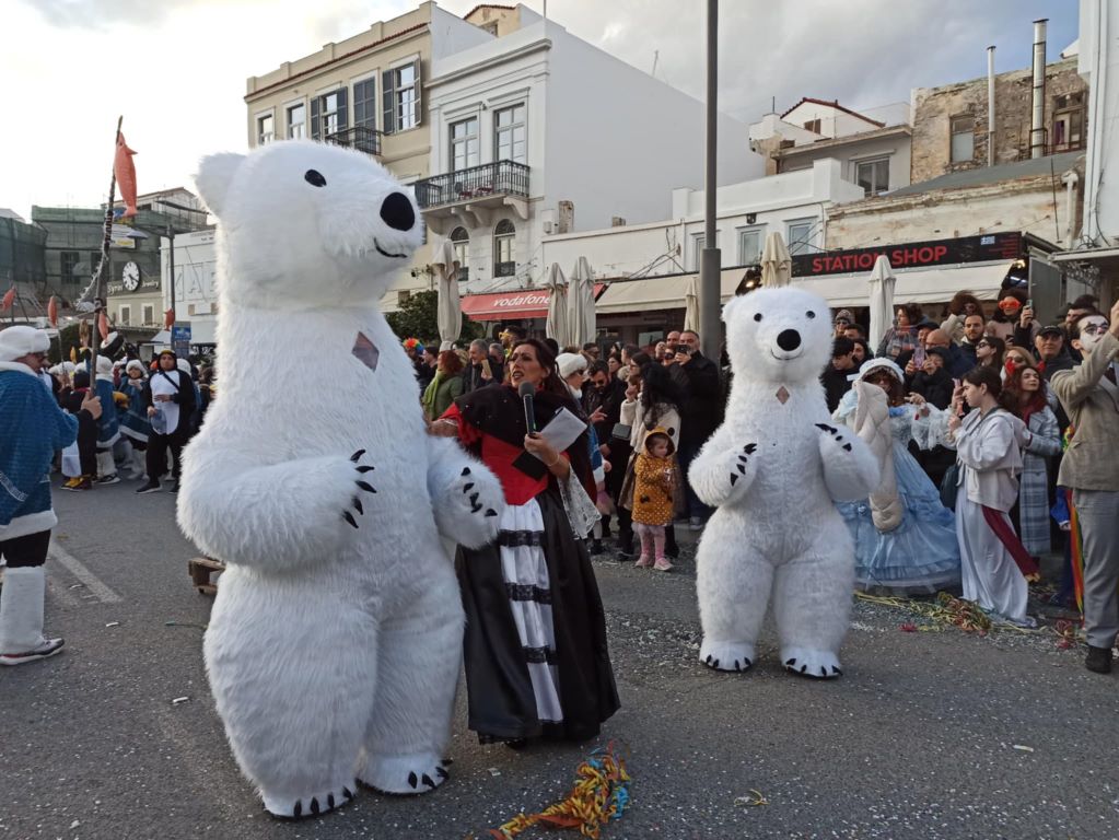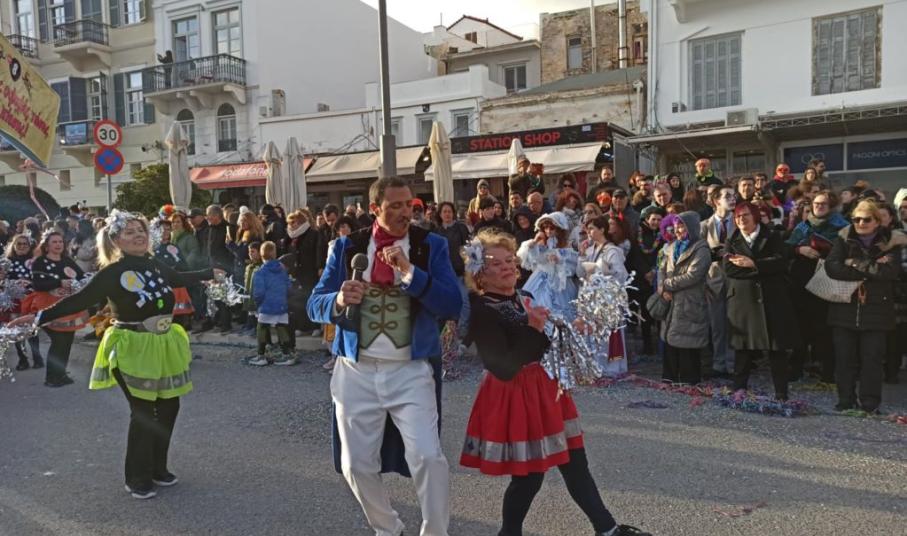 Οι καρναβαλιστές, με την πολύτιμη βοήθεια των εθελοντών, αλλά και των παρουσιαστών και συγκεκριμένα της Μαριάννας Βακονδίου και του Γιώργου Ρούσσου, μέσω του κεντρικού παραλιακού δρόμου του λιμανιού και των πεζόδρομων του κέντρου, κατευθύνθηκαν στην πλατεία Μιαούλη, όπου εκεί έστησαν μία μεγάλη γιορτή με αποκριάτικη μουσική, παρουσιάζοντας παράλληλα τα θέματα των 13 ομάδων που συμμετείχαν στη φετινή διοργάνωση.