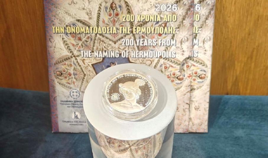 Παρουσιάστηκε από την Τράπεζα της Ελλάδος, το συλλεκτικό νόμισμα για τα 200 χρόνια από την ονοματοδοσία της Ερμούπολης