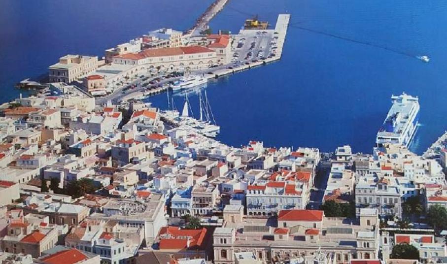 Όταν το πλοίο πλησιάζει στο λιμάνι της Σύρου, η εικόνα των δύο λόφων που φιλοξενούν τις δύο πόλεις, εντυπωσιάζει και συναρπάζει τους επισκέπτες. Δύο πόλεις, δυο κοινωνίες που… “έκτισαν σε μια κλίμακα με την πιο δυνατή αμφιθεατρικότητα”. Δυο λόφοι και δυο κόσμοι. Καθολικοί και Ορθόδοξοι. Δίνουν τα χέρια. Ο Θεός είναι ένας! Η Σύρος, όπως και τα υπόλοιπα Κυκλαδονήσια αναδύεται από τη θάλασσα υπό μορφή γυμνών και απότομων βράχων. Και το πρώτο της όνομα… Σουρή Οσούρα ή Συρίη, όπως τη θέλει ο Όμηρος.