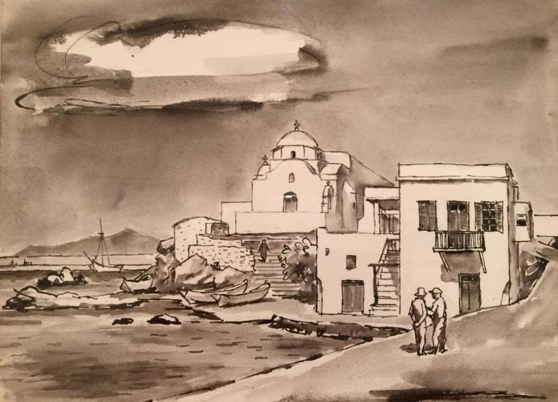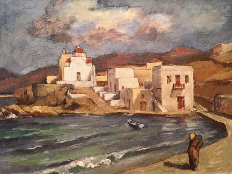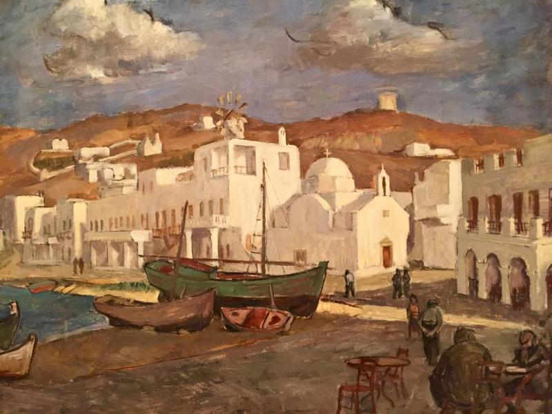 Το κοσμοπολίτικο νησί της Μυκόνου με τη μοναδική κυκλαδίτικη αρχιτεκτονική, τα άσπρα εκκλησάκια και τα τοπία απαράμιλλης ομορφιάς πρωταγωνιστεί στην αναδρομική έκθεση του ζωγράφου Δημήτρη Δάβη που φιλοξενείται στο Μουσείο Μπενάκη – Πειραιώς.