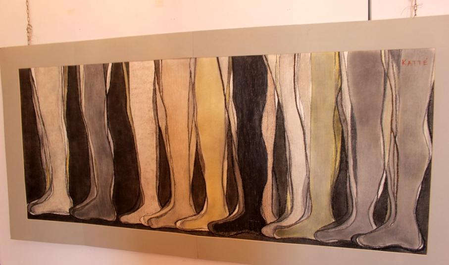 Πρωταγωνιστής μεγάλου μέρους των έργων της κ. Καττέ είναι ο άνθρωπος, μέλη του οποίου, όπως χέρια, πόδια και πρόσωπα γυμνά, χωρίς χαρακτηριστικά συμβολίζουν την αποξένωση και τη μοναχική παρουσία του σ’ ένα αστικό συνήθως περιβάλλον.