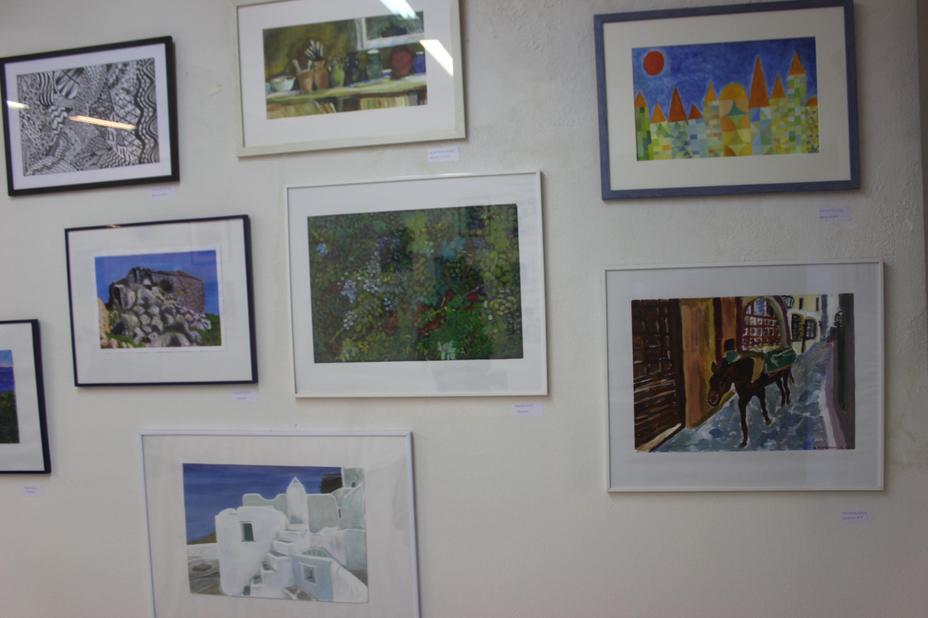 Η έκθεση περιλαμβάνει τοπία, προσωπογραφίες και πολλές ακόμη δημιουργίες με μικτές τεχνικές - ακρυλικό – παστέλ. Κάποιες εξ’ αυτών είναι βασισμένες σε έργα γνωστών ζωγράφων και φωτογραφίες με χαρακτηριστικό -στα μάτια των ντόπιων- το εξώφυλλο του εντύπου του Δήμου Σύρου – Ερμούπολης «Syros, the island of 4 seasons».