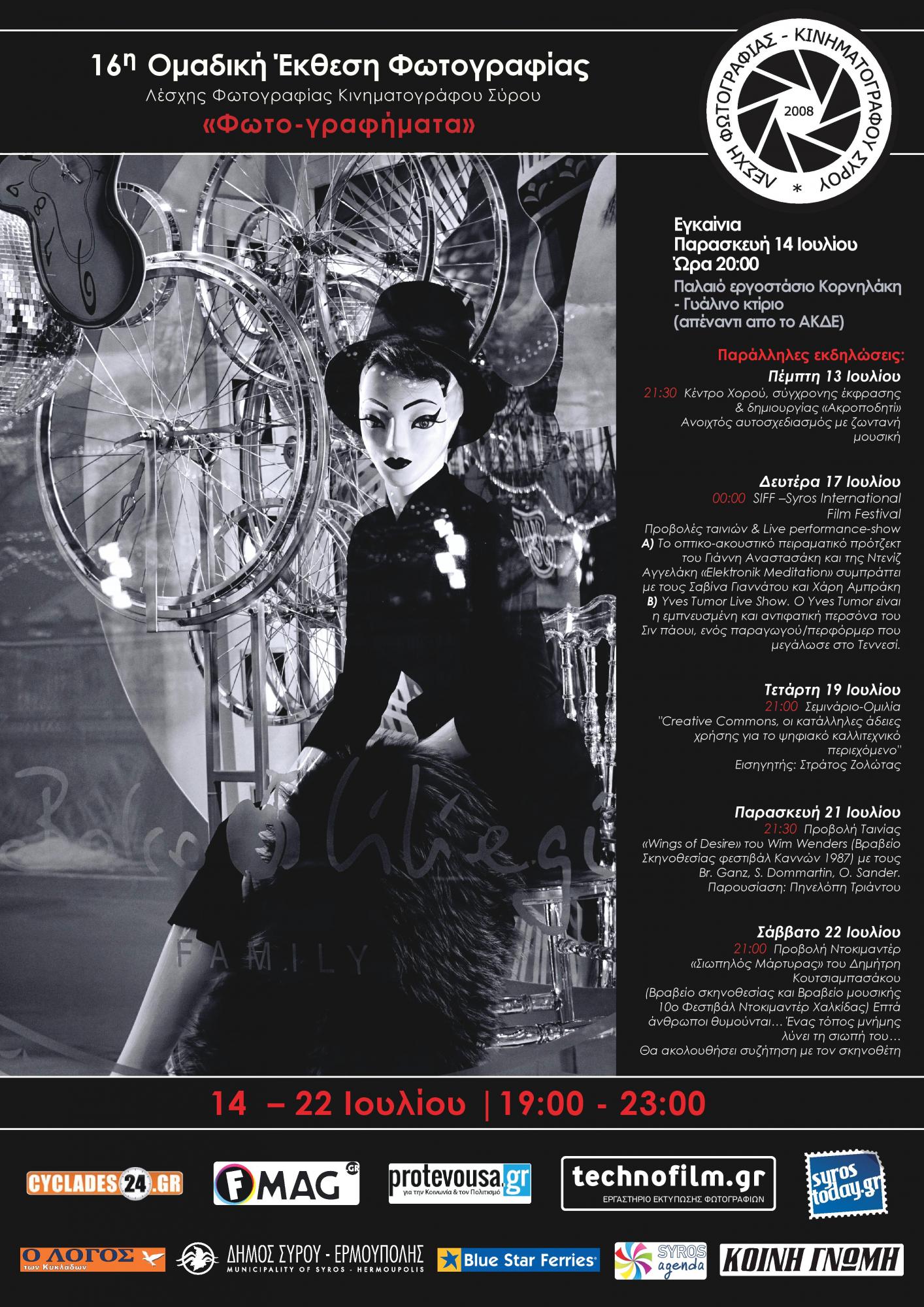 Η Λέσχη Φωτογραφίας - Κινηματογράφου Σύρου παρουσιάζει την 16η Ομαδική Έκθεση Φωτογραφίας των μελών της με θέμα «Φωτο-γραφήματα».