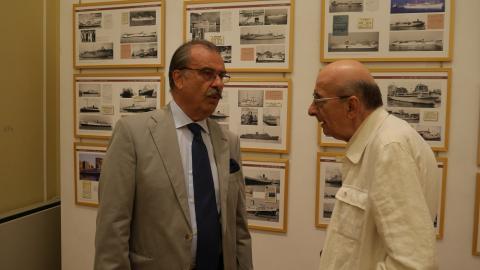 Την άρρηκτη σύνδεση της έκθεσης με τη νησιωτική Ελλάδα και ιδιαίτερα τη Σύρο, επεσήμανε με τη σειρά του ο κ. Φουστάνος. «Η Σύρος οφείλει σε μεγάλο βαθμό της ανάδειξή της στην ακτοπλοΐα», ανέφερε χαρακτηριστικά, εξηγώντας πως, από το 1857 η Ερμούπολη, δημιούργημα χιλιάδων προσφύγων από διάφορα μέρη της Ελλάδος υπήρξε η έδρα της πρώτης ελληνικής ακτοπλοϊκής επιχείρησης. Αυτό συνέβαλε αποφασιστικά στην εξέλιξή της ως τόπος υψηλών προδιαγραφών, ο οποίος στέγαζε και δραστηριότητες σημαντικών ανθρώπων.