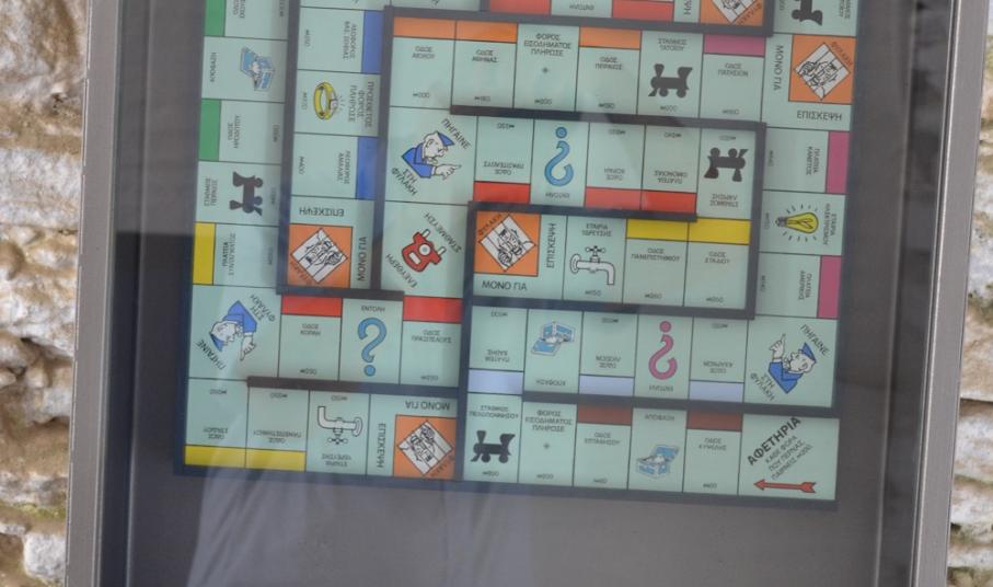 Το έργο του Denis De Rudder που φιλοτεχνήθηκε για το Μπιενάλε του Μουντάδου αναμιγνύει τις φιγούρες του λαβυρίνθου που αρχικά ήταν τόπος μαρτυρίου με το παιχνίδι της Μονόπολης. Πρόκειται για ένα σχόλιο στις καταστροφικές επιπτώσεις που είχε η κοινωνικο-οικονομική κρίση στον ελληνικό πληθυσμό. Ο τόνος δίνεται από τον τίτλο «Πονώ πολύ». Η διαταγή «Πλήρωσε!» που επανέρχεται επανειλημμένα αντηχεί με απογοήτευση το σλόγκαν που οι διαδηλωτές φώναζαν πριν μερικά χρόνια «Δεν πληρώνω».