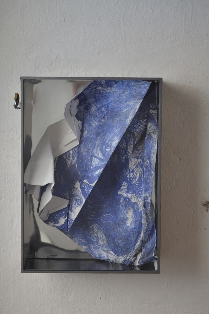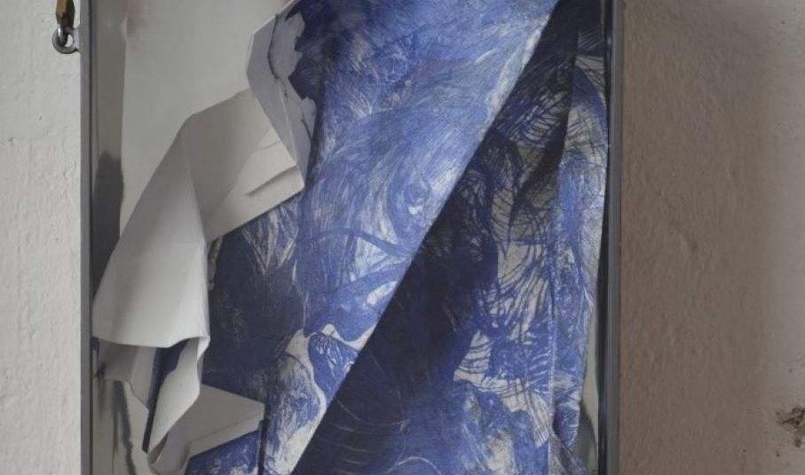 Μια μεγάλη λιθογραφία που αποτελείται από δύο φιγούρες που επικαλύπτονται και διασταυρώνονται σε διαφάνεια, παρουσιάζει ο Dany Danino. Πρόκειται για έναν στρόβιλο γραφών μέσα στις οποίες το μάτι αναζητά την κατάληξη. Ένα σύνολο από αρθρώσεις τσακίσεων και πτυχώσεων που ξεκινούν από αυτή τη λιθογραφία. Αναδιπλώσεις που αναπτύσσουν μια σύνθεση με πτυχές. Μια κυβιστική αρχιτεκτονική και ένας οργανικός λαβύρινθος που συνυπάρχουν και συγχωνεύονται. Καθρέφτες που πολλαπλασιάζουν αυτή την κατασκευή από χαρτί.