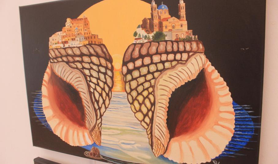 Η έκθεση παρουσιάζεται στην Αίθουσα Εμμ. Ροΐδη στο Πνευματικό Κέντρο Ερμούπολης και θα διαρκέσει έως 8 Αυγούστου.