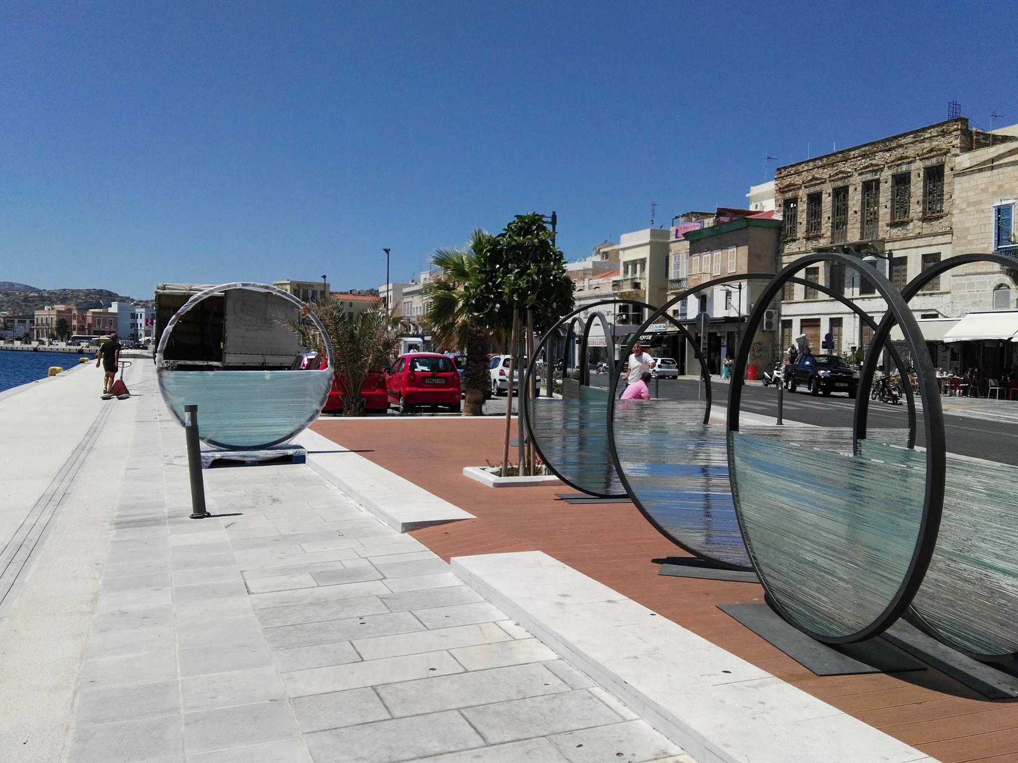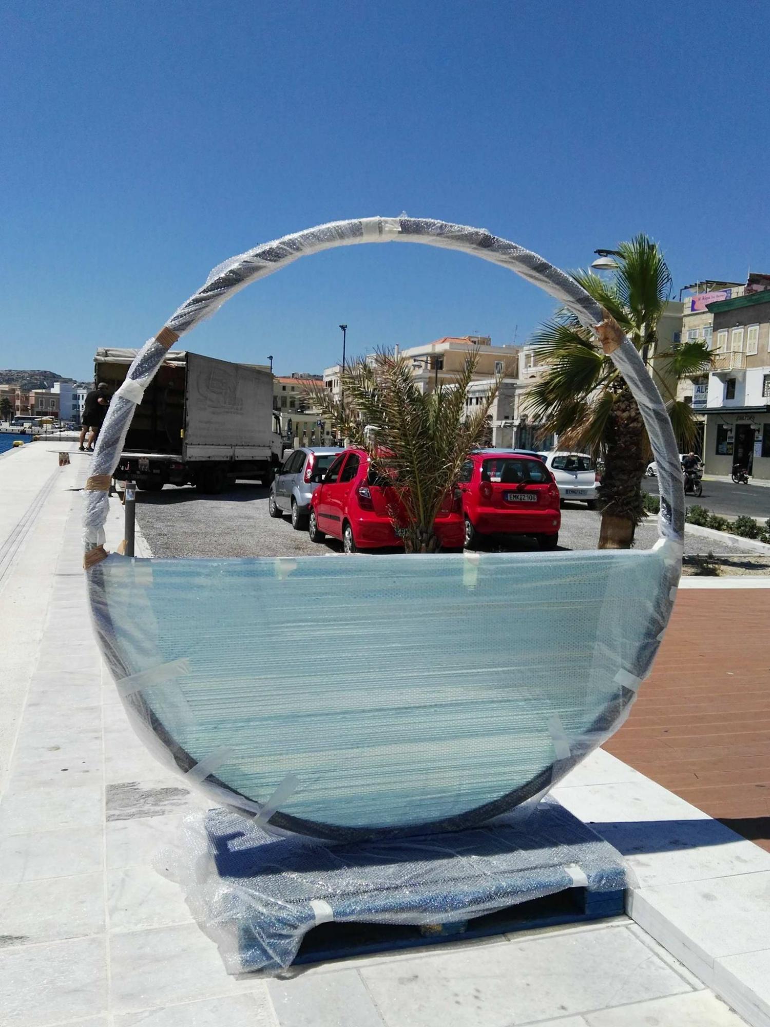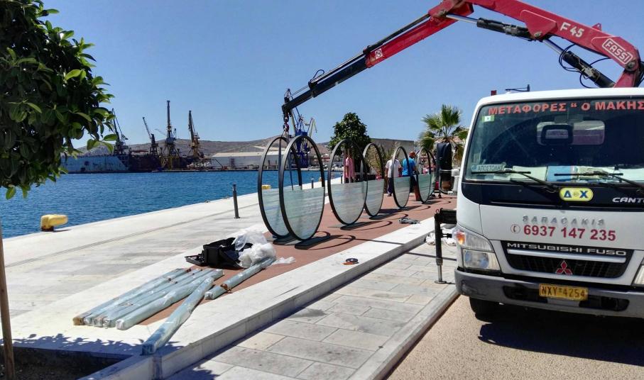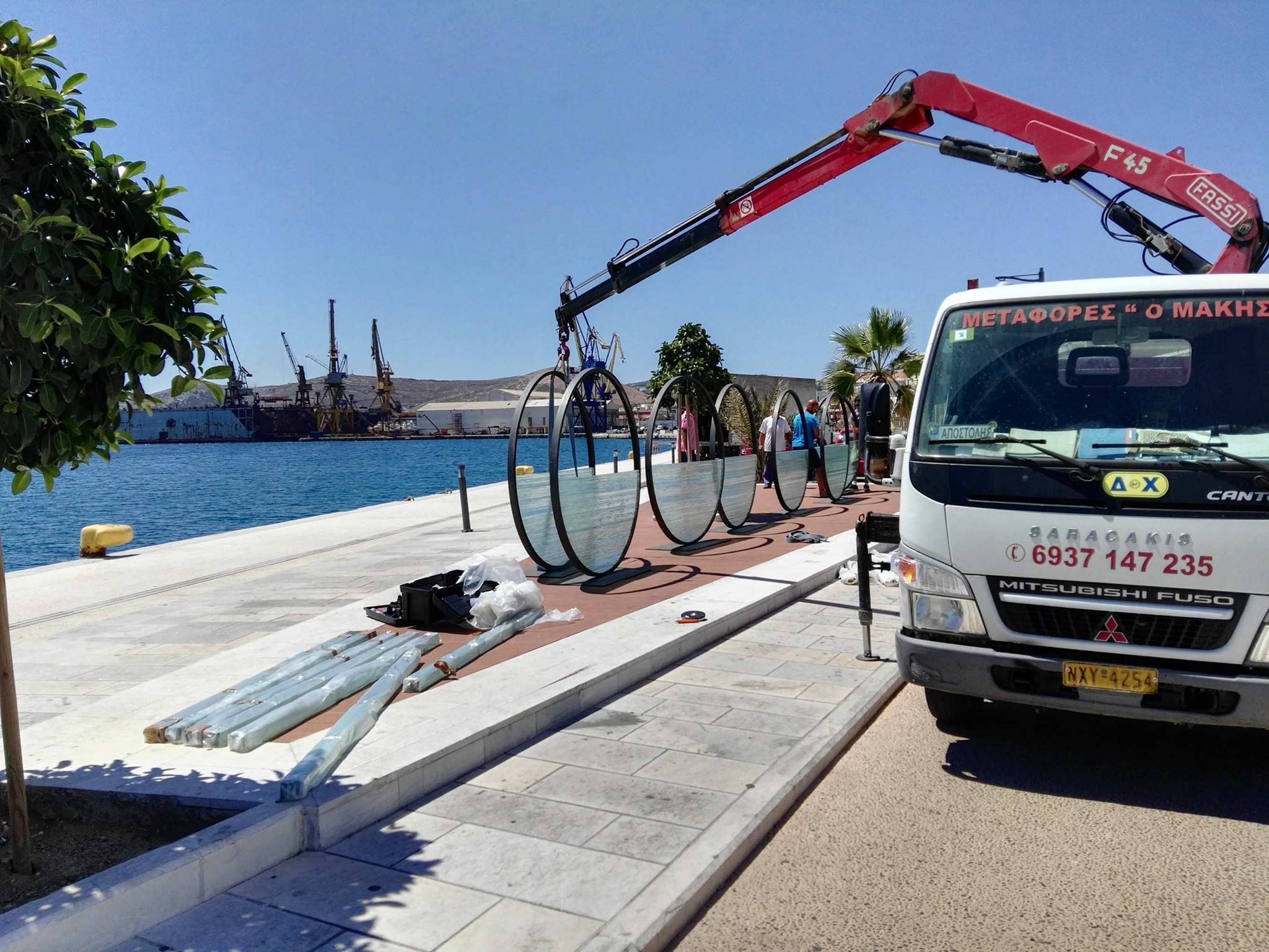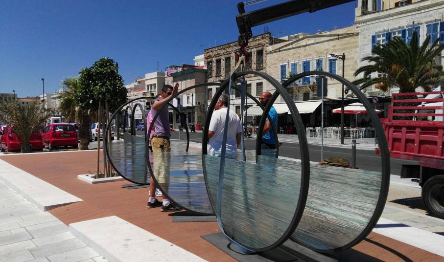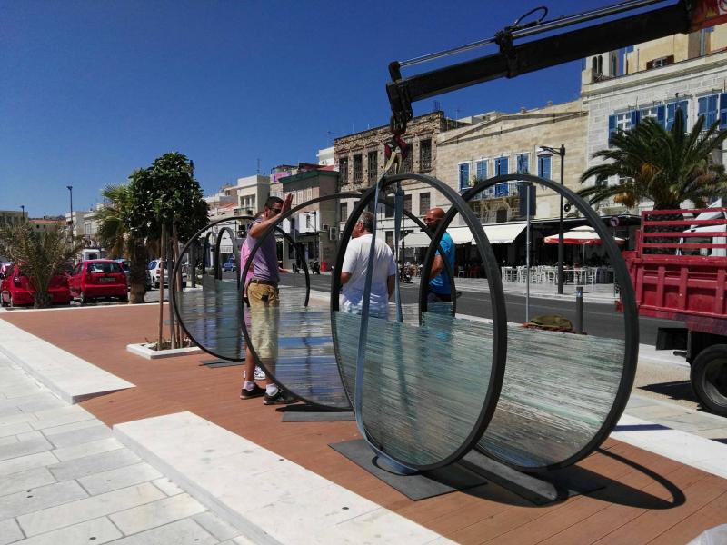 Οι επτά κύκλοι από μέταλλο και γυαλί που “έδεσαν” αρμονικά με το μοναδικό τοπίο και τη θάλασσα, αντικαταστάθηκαν το πρωί της Κυριακής από μία - μεγαλύτερων διαστάσεων - σύνθεση, που στο εξής θα κοσμεί σταθερά το παραλιακό μέτωπο της πόλης.