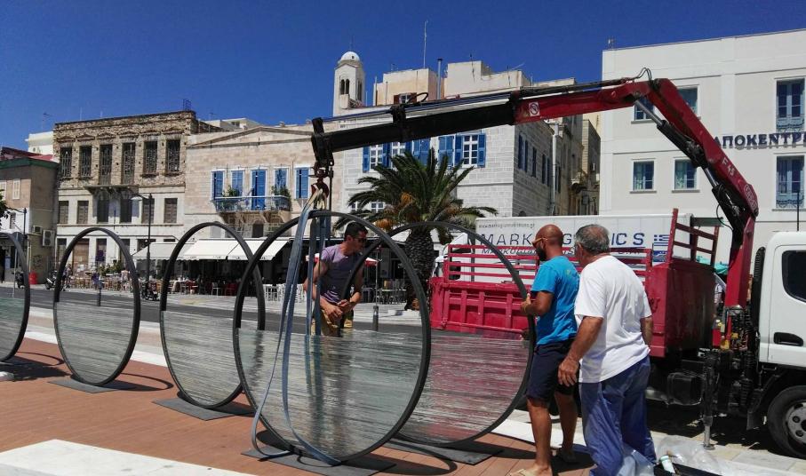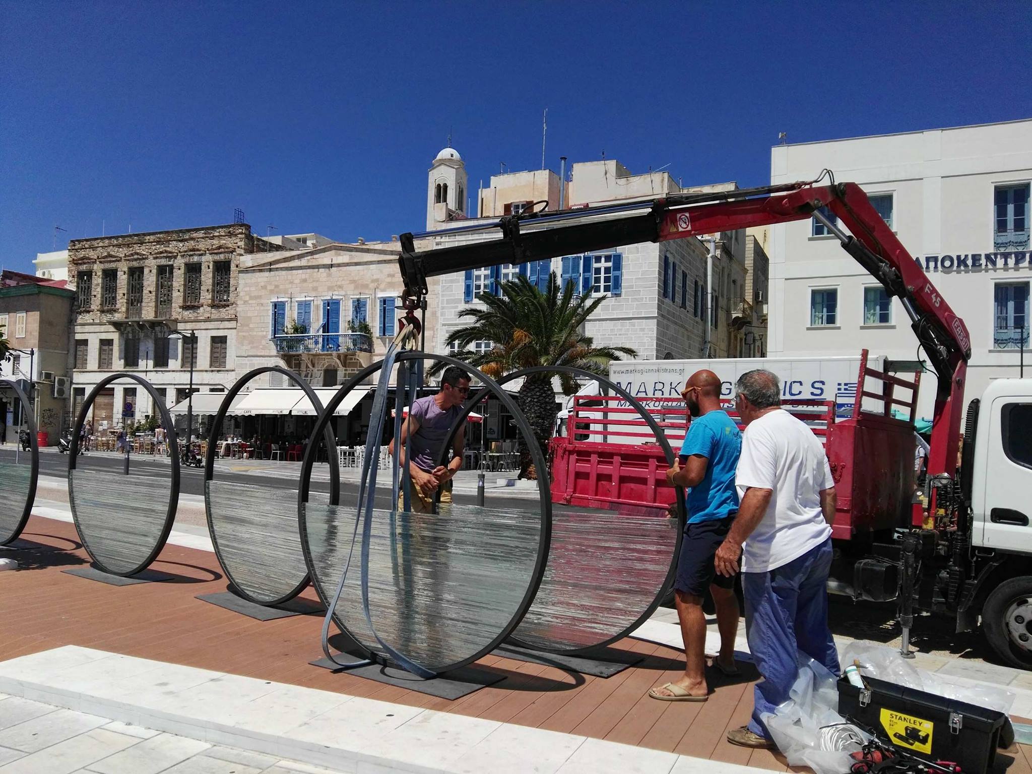 Αξίζει να σημειωθεί πως, από το πρωί της Κυριακής έως και αργά το μεσημέρι, στον χώρο της παραλιακής ζώνης για την ομαλή εκτέλεση των εργασιών αντικατάστασης του έργου βρέθηκαν εκτός από τους αρμόδιους εργάτες και η Αντιδήμαρχος Πολιτισμού, Θωμαή Μενδρινού, ο πρόεδρος του Δημοτικού Λιμενικού Ταμείου Σύρου, Δημήτρης Κοσμάς καθώς και ο Γιώργος Αλτουβάς, υπεύθυνος της Επιτροπής Εικαστικών του Δήμου Σύρου – Ερμούπολης.