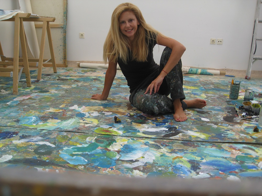Μ.Φ: «Έχω εμμονή με το νερό και το δυνατό φως του ήλιου και ό,τι έχει σχέση μ´ αυτά στην προσωπική μου ζωή και στην ζωγραφική μου τα τελευταία χρόνια. Οι ανοιχτοί ορίζοντες με το δυνατό φώς, η ελεύθερη κίνηση των κολυμβητών κάτω από το νερό και πάνω από αυτό στην απόλυτη προστασία του, οι αντανακλάσεις του νερού πάνω στα γυμνά σώματα, οι φυσαλίδες, η άμμος του βυθού, η κίνηση των κολυμβητών χωρίς βαρύτητα ανάμεσα από αρχαίες κολώνες, αρχαία θραύσματα, οι βάθρες με τους λουόμενους, η ροή του νερού στον καταρράκτη, μου δημιουργούν έναν ονειρικό κόσμο. Ζωγραφίζω βιωμένους προσωπικούς παραδείσους, την ευτυχία, την χαλάρωση, την ένωση με την φύση, τον ερωτισμό που νιώθουν οι λουόμενοι μέσα στο νερό».