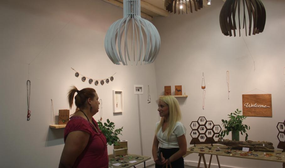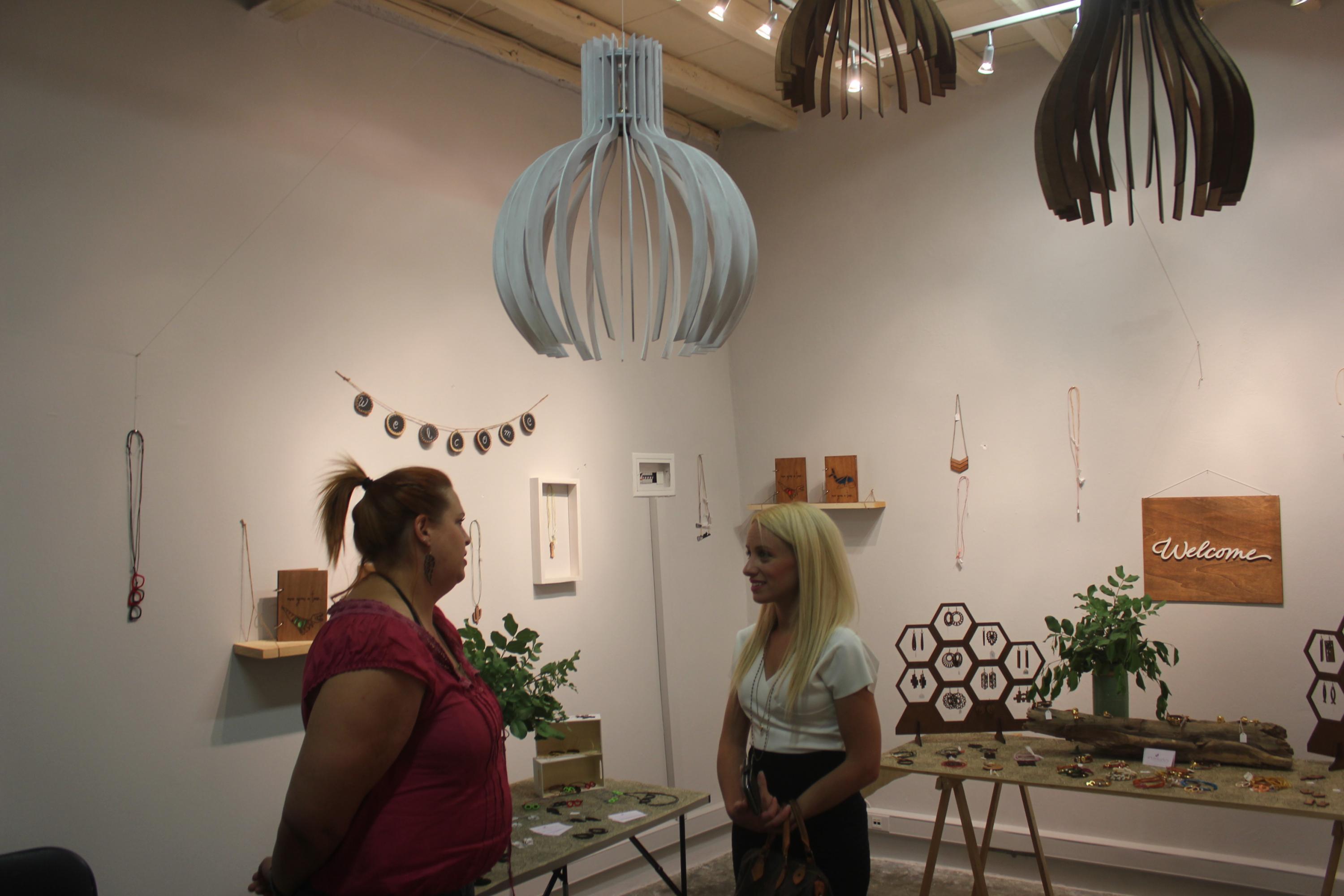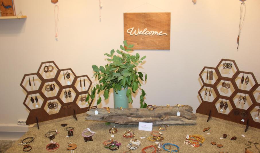 «Στην έκθεση παρουσιάζονται ξύλινες δημιουργίες και δημιουργίες από πλεξιγκλάς και από ύφασμα. Έχουμε τα μηχανήματα που χαράσσουμε και κόβουμε, με μία πιο ιδιαίτερη αγάπη στο κομμάτι του ξύλου», δηλώνει χαρακτηριστικά η κ. Παύλου. Σκουλαρίκια, κρεμαστά για το λαιμό, τρίλιζες, αντικείμενα για παιδική δραστηριότητα και πολλά ακόμη πρωτότυπα προϊόντα μαρτυρούν τις πολλές δυνατότητες που προσφέρει το ξύλο για δημιουργία με στυλ και κομψότητα.