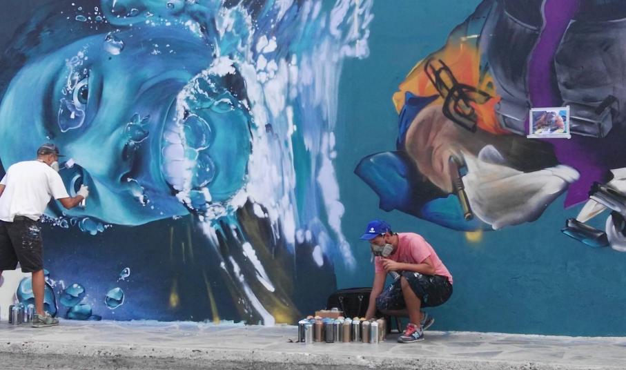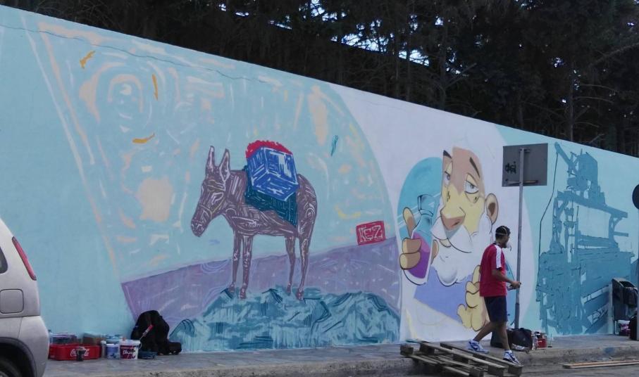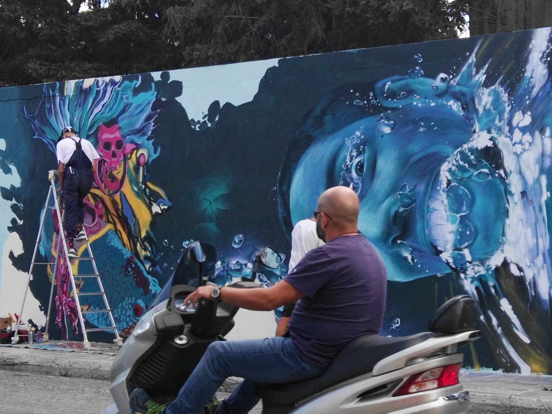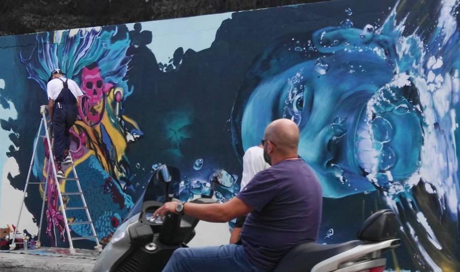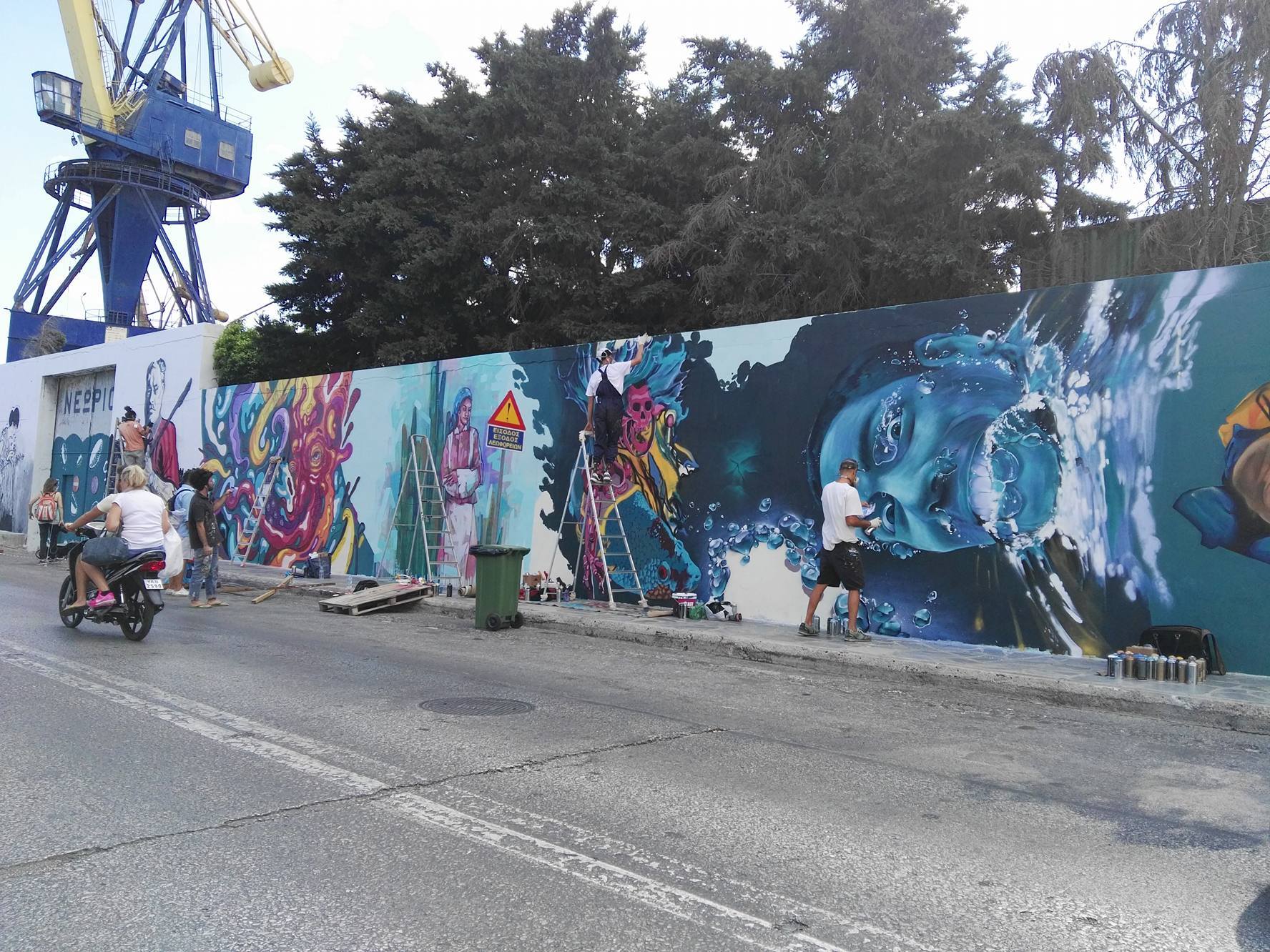 Ο μεγάλος ρεμπέτης Μάρκος Βαμβακάρης, εικόνες από την παλαιά ζωή των κατοίκων, αλλά και από τα εργοστάσια της Σύρου έρχονται να “στολίσουν” μία αρκετά μεγάλη επιφάνεια “νεκρού” μέχρι προσφάτως τοίχου, γεννώντας την ανάγκη στους πολίτες να μυηθούν στις οδούς που οδηγούν στο σπουδαίο παρελθόν του τόπου και στην ανάπτυξή του.