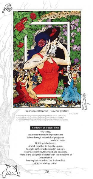 «Κάτω από το πέπλο όποιας κρίσης, διαισθανόμενοι την απειλή του επερχόμενου «βαλτώδους ψυχικού τοπίου», ας αντιδράσουμε ως μια αρχή προς την ουσιαστική πορεία της αξίας της ζωής», σημειώνει ο καλλιτέχνης.