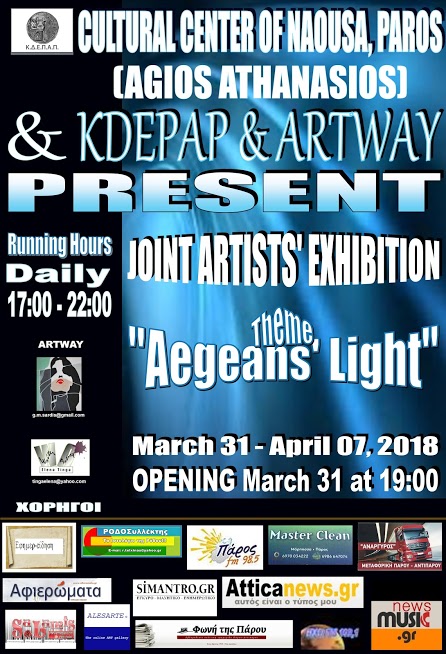 ΟΜΑΔΙΚΗ ΠΑΡΟΥΣΙΑΣΗ ΚΑΛΛΙΤΕΧΝΩΝ με ΘΕΜΑ «ΑΙΓAΙΩΝ ΦΩΣ» (31 Μαρτίου έως 7 Απριλίου 2018).