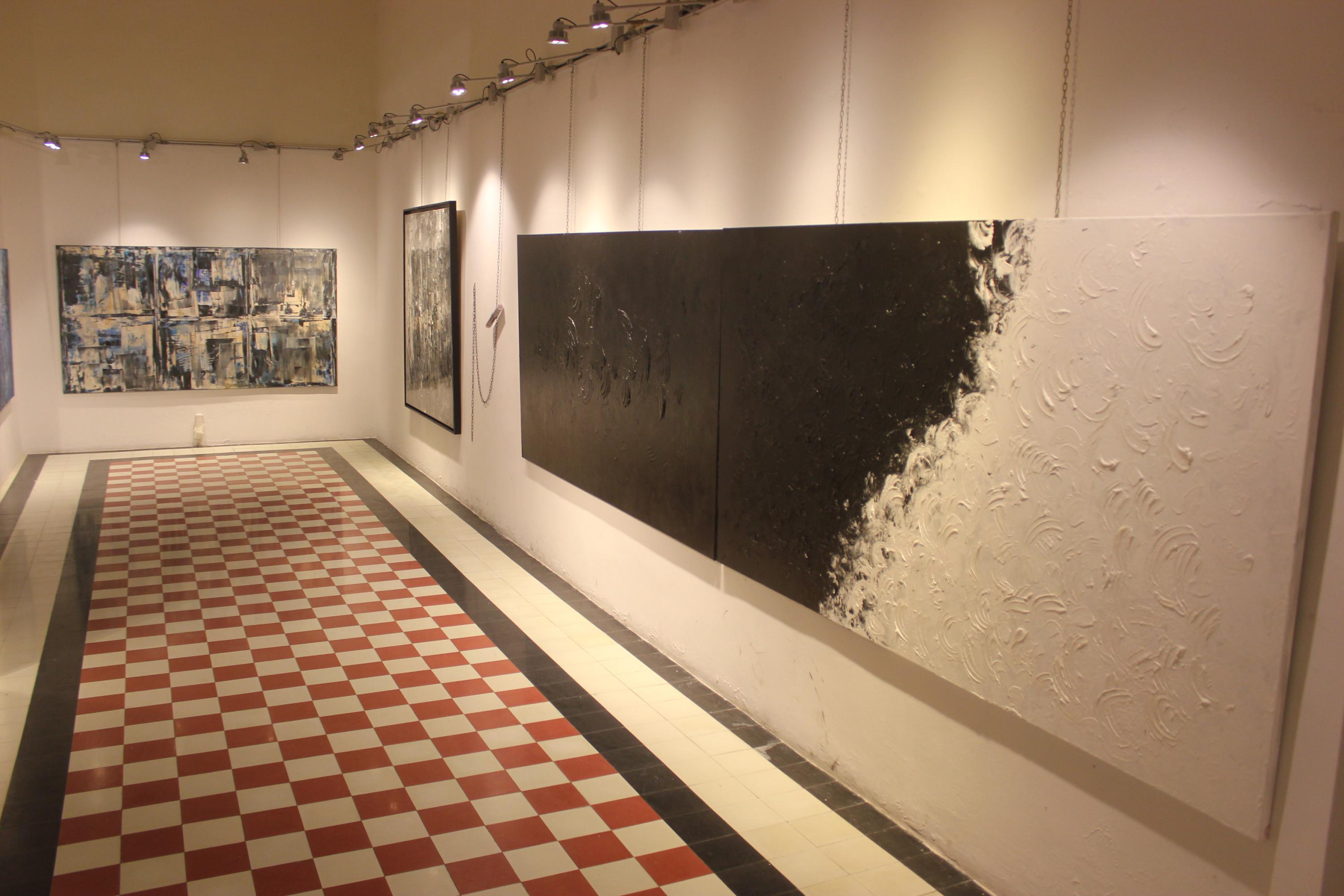 Κυρίαρχο χρώμα στην παρούσα έκθεση, το μαύρο, που τις περισσότερες φορές μονοπωλεί το ενδιαφέρον, ενώ στο έργο «Decisions» αναμετράται με το άσπρο, διεκδικώντας την επικράτησή του στον καμβά και στο μυαλό.