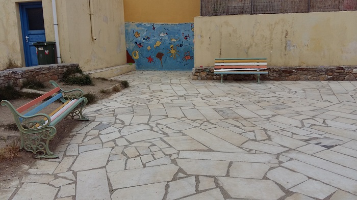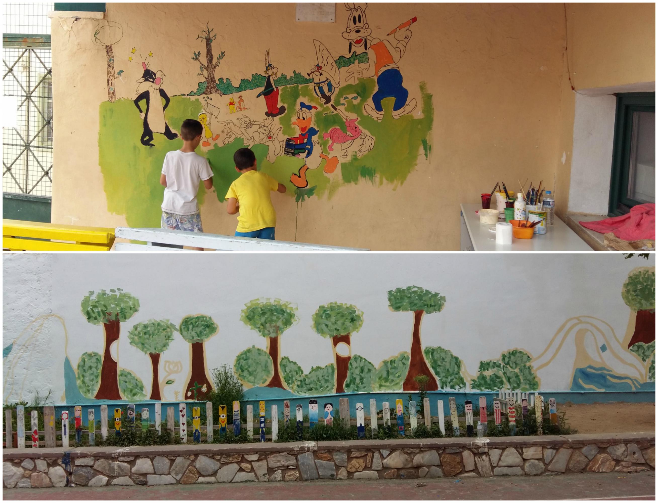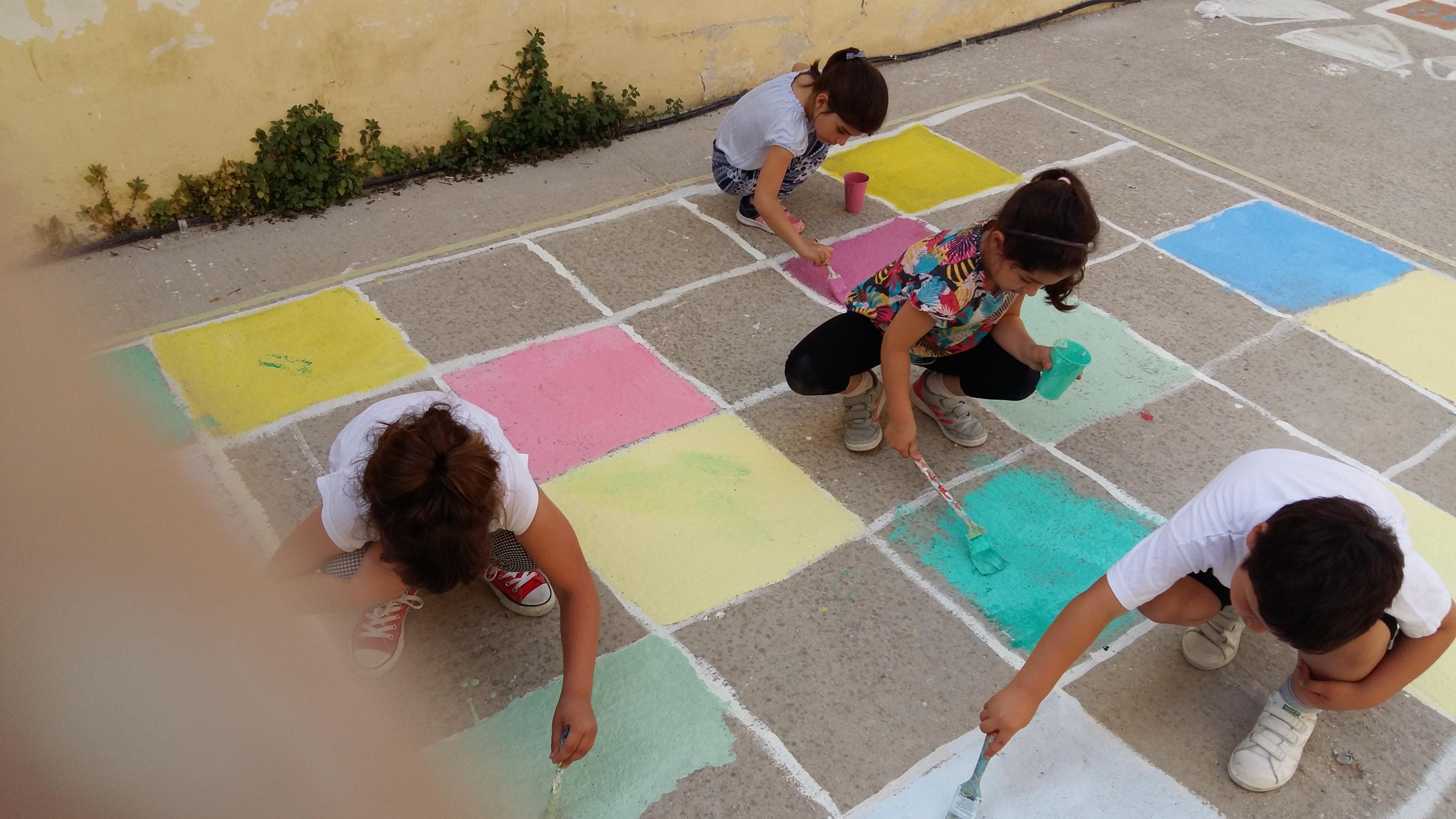 Χρώμα στις αυλές των σχολικών μονάδων τους έδωσαν οι μαθητές και οι μαθήτριες του 1ου και του 4ου Δημοτικού Σχολείου Ερμούπολης, υπό την καθοδήγηση της δασκάλας των καλλιτεχνικών, Δανάης Κοκκίνου.