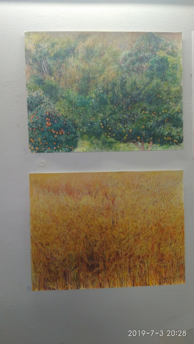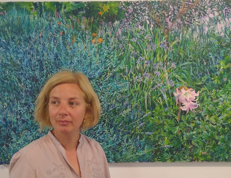 Σε αυτή, η καλλιτέχνης, που τα τελευταία δεκαπέντε χρόνια ζει στη Σίφνο και διδάσκει εικαστικά στο Γυμνάσιο και το Λύκειο του νησιού, προσπαθεί να αποδώσει και να μεταδώσει την ατμόσφαιρα του τοπίου των κήπων του άμεσου περιβάλλοντός της.