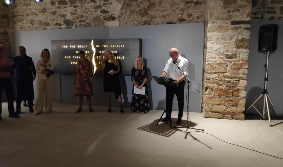 «Καλλιτέχνες όπως η Βένια Δημητρακοπούλου μας βοηθούν να καταλάβουμε τι γίνεται γύρω μας, να δούμε μπροστά, να βρούμε νέες λέξεις και να τις βάλουμε σε σειρά για να περιγράψουμε αυτό που βλέπουμε, να προσέχουμε αυτό που μετράει, να φανταζόμαστε και να βάζουμε νέους στόχους», σημείωσε στον χαιρετισμό του ο Ιταλός Πρέσβης κ. Marras.