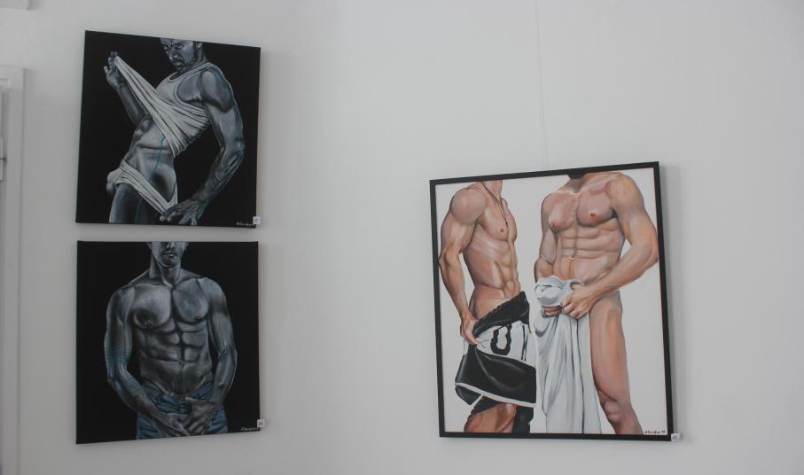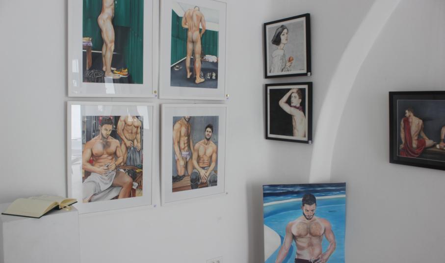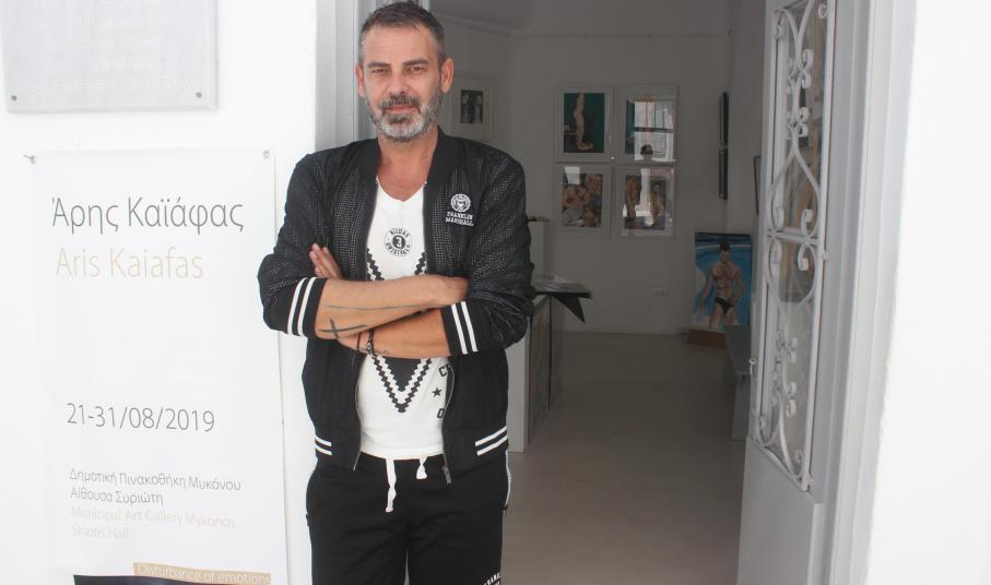 Πορτρέτα, μεταμορφώσεις και στιγμιότυπα, στα οποία το ανδρικό κάλλος αποτυπώνεται μέσα από μία έντονη και συναισθηματικά ποτισμένη αλληλεπίδραση μεταξύ σώματος και περιβάλλοντα χώρου, συνθέτουν τον ζωγραφικό κόσμο του Άρη Καϊάφα, που φέτος αποκαλύπτεται για πρώτη φορά στους κατοίκους και τους επισκέπτες της Μυκόνου.