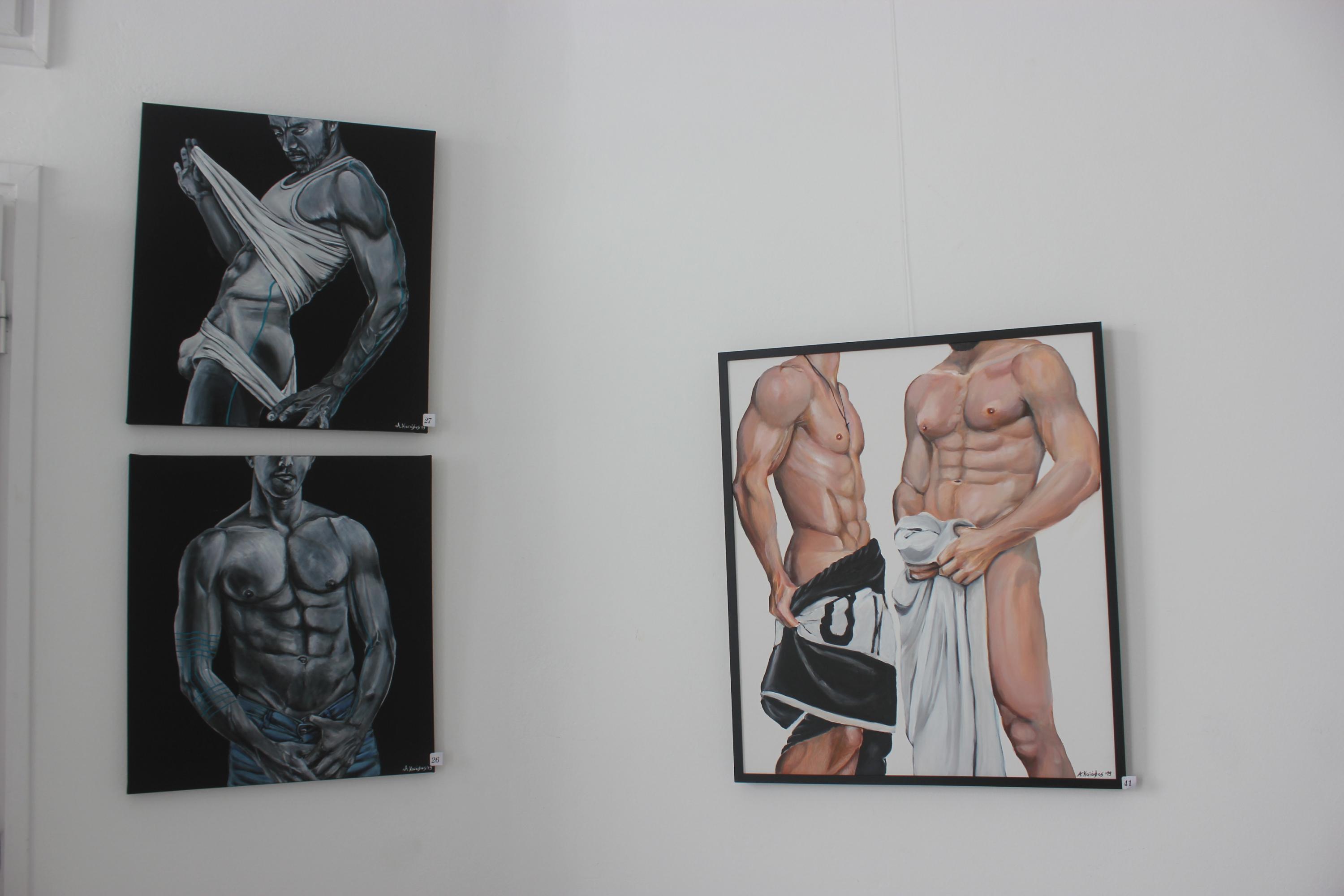 Στην τρίτη ενότητα έργων ο καλλιτέχνης αποτυπώνει ανδρικές μορφές σε άκρως ιδιωτικές και προσωπικές στιγμές σε συνθέσεις που χαρακτηρίζονται από μια επιδέξια οργάνωση του ζωγραφικού χώρου και σκηνοθεσία του εικαστικού πλάνου. Νεανικές δυναμικές και τολμηρές ανδρικές φιγούρες γίνονται οι πρωταγωνιστές του έργου του επιχειρώντας συνειδητά την εξιδανίκευση και αποθέωση του ανδρικού κάλλους προς μια απενοχοποίηση του ανδρικού αισθησιασμού. Αντιστρέφοντας τα εικονογραφικά στερεότυπα ταύτισης του ερωτισμού με το γυναικείο σώμα αποτυπώνει τον αισθησιασμό και την ερωτική επιθυμία μέσα από αναπαραστάσεις γυμνών ανδρικών σωμάτων που χαρακτηρίζονται από ηδονικότητα. Λειτουργώντας στις περισσότερες περιπτώσεις, κατά κάποιο τρόπο ως ένα είδος voyeur, καταγράφει και αποτυπώνει στιγμιότυπα κατά τα οποία οι εικονιζόμενοι παρουσιάζονται σε παρασκηνιακές καταστάσεις και ιδιωτικές διαδικασίες, ενώ η παρουσία του καλλιτέχνη-παρατηρητή φαίνεται να μη γίνεται άμεσα αντιληπτή.