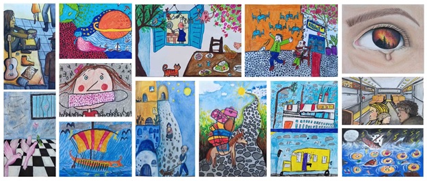 Ειδικότερα, από τα 56 έργα μαθητών που έστειλε η Art.t.o.S από τα τμήματα ζωγραφικής-σχεδίου και χειροτεχνίας, ξεχώρισαν οι ζωγραφιές της Καλλιόπης Λυγνού (7 χρονών), του Φίλιππου Κακούσιου (6 χρονών) και της Σάρας Μπιλατσάι (10 χρονών).