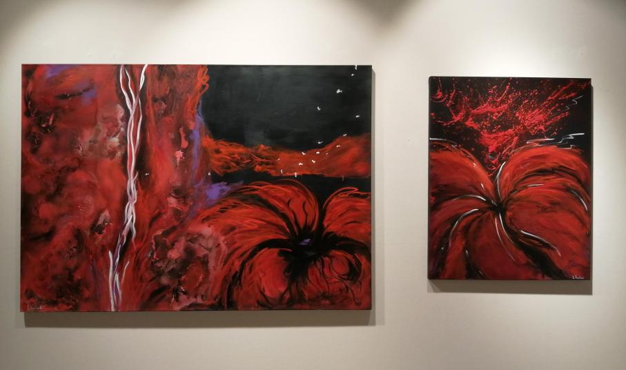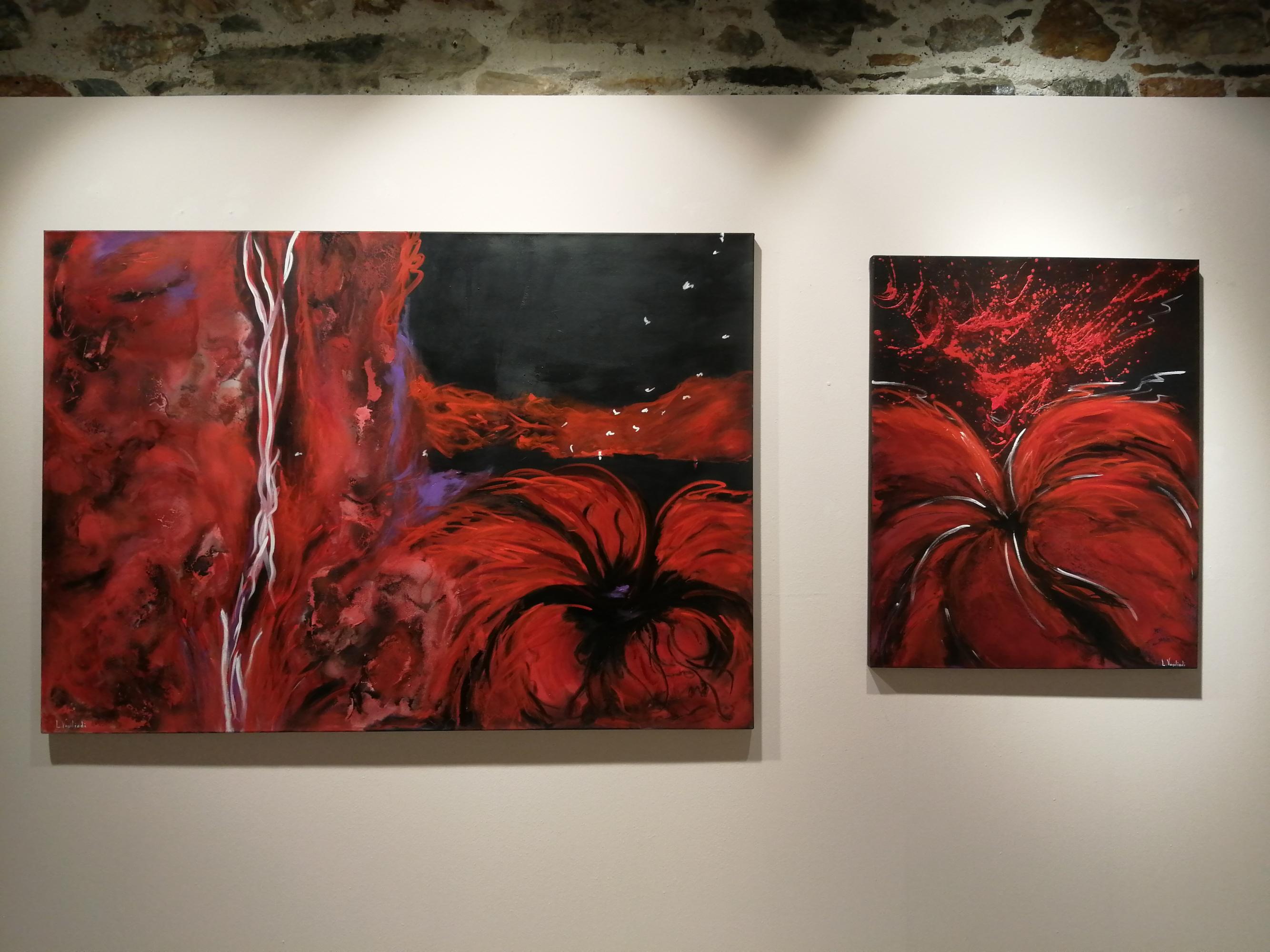 Αντίθεση μεταξύ χρώματος και φωτός παρατηρείται και στη δεύτερη αίθουσα, όπου κυρίαρχο είναι το κόκκινο χρώμα. Παρόλο που αυτό μοιάζει με κύμα, αν το προσέξει κανείς καλά, είναι το κρασί που ρέει μέσα σε ένα μπουκάλι. Στην τρίτη αίθουσα κυριαρχεί η ανθρώπινη φιγούρα. Στα έργα βλέπουμε άτομα ακίνητα, που συνεχίζουν ως ομάδες και οδηγούνται σε ένα σημείο συνάντησης, μια αφετηρία, ένα καινούριο ξεκίνημα.