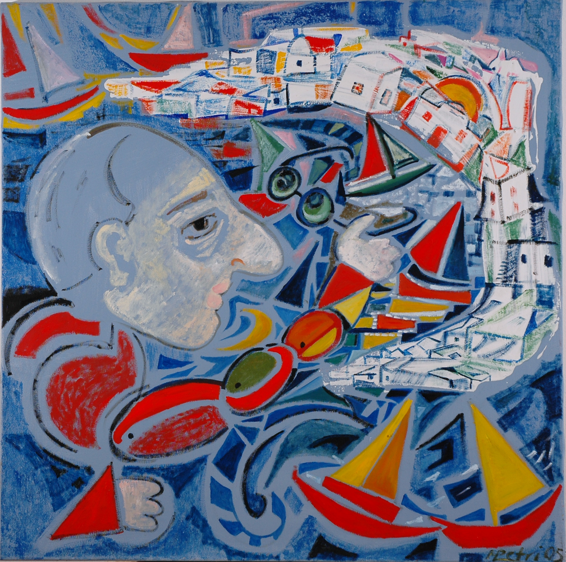 Με την προσωπικότητα του νεοέλληνα ασχολείται για περισσότερο από δέκα χρόνια η Μυκονιάτισσα εικαστικός Μαρίνα Πετρή, έχοντας ως κεντρικό ήρωα την εθνική λαϊκή-παραδοσιακή φιγούρα του Καραγκιόζη.