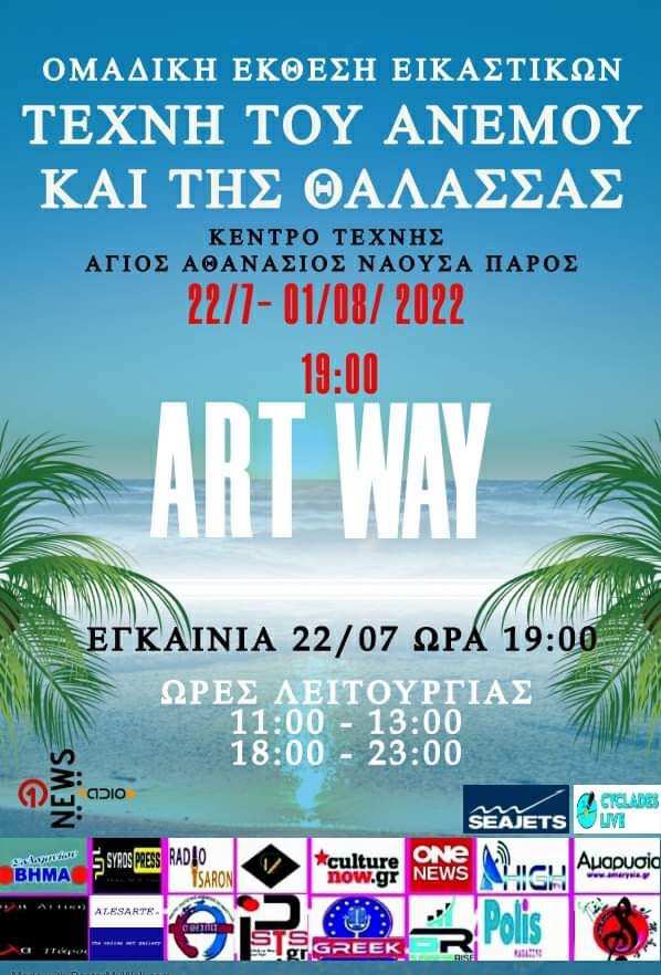 Εδώ στο κέντρο των Κυκλάδων που η πρωτόγνωρη φυσική ομορφιά συναντά την ιστορία. Για μια ακόμα χρονιά η ομάδα εικαστικών ART WAY που ίδρυσε ο εκλιπών εικαστικός Γιώργος Σάρδης συνεχίζει να απλώνει την τέχνη σε κάθε γωνιά του νησιού με κέντρο τον ιστορικής φήμης και αρχιτεκτονικής εκθεσιακό χώρο του Αγίου Αθανασίου στην Νάουσα. Ερχόμαστε εδώ με σπουδαίους καλλιτέχνες που εμπνέονται από το κυκλαδίτικο παραμύθι και τις εικόνες του που γεννιούνται κάθε στιγμή σε αυτόν τον μαγικό τόπο που το φως εισχωρεί και διαπερνά ταυτόχρονα κάθε του σημείο.