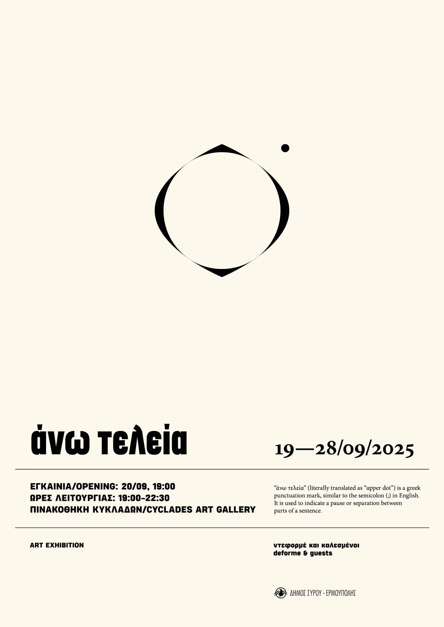 Η άνω τελεία, σημείο στίξης ξεχασμένο, μας υπενθυμίζει ότι υπάρχει πάντα ο χρόνος μιας μικρής παύσης∙ μία στιγμή για να σκεφτούμε και να δράσουμε αλλιώς.