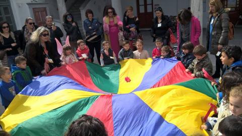 Τέλος, «Ρόδες, γέλια και χαρά, χρώματα και παιχνίδια με συναισθήματα πολλά» κατέκλυσαν χθες τη Χώρα Μυκόνου. Ποδήλατα και πατίνια στη σειρά με αφετηρία το Ξενοδοχείο Λητώ, ξεκίνησαν στις 11:00 με τερματισμό το Δημαρχείο. Εκεί, μεγάλα αερόστατα και πίνακες ζωγραφικής περίμεναν τους μικρούς ποδηλάτες για να εκφράσουν και να αποτυπώσουν συναισθήματα με την καθοδήγηση παιδαγωγών των παιδικών σταθμών του Δήμου Μυκόνου. Κατά τη διάρκεια της εκδήλωσης πραγματοποιήθηκαν ψυχοκινητικές δραστηριότητες στο γιαλό, μπροστά στο Δημαρχείο και τον Άγιο Νικολάκι.