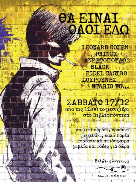 Ο Leonard Cohen, ο Prince, ο Ανεστόπουλος, ο Φιντέλ Κάστρο, ο Σουρούνης, ο Ντάριο Φο και πολλοί ακόμη θα είναι όλοι στη γιορτή του "Βιβλιοπόντικα" στη Σύρο, το Σάββατο 17 Δεκεμβρίου από τις 12 το μεσημέρι.