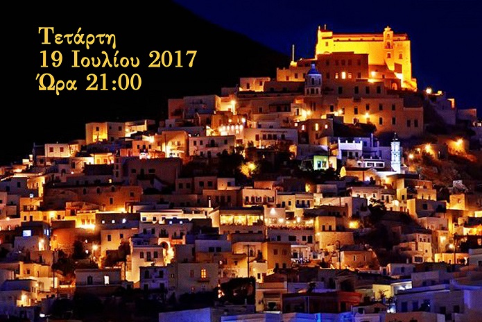 Ο Δήμος Σύρου - Ερμούπολης και ο Πολιτιστικός Σύλλογος Άνω Σύρου συνδιοργανώνουν την Τετάρτη 19 Ιουλίου 2017 και ώρα 21:00 μουσική βραδιά στην Άνω Σύρο στην πλατεία Βελισσαρίου Φρέρη (Αγίου Αντωνίου).