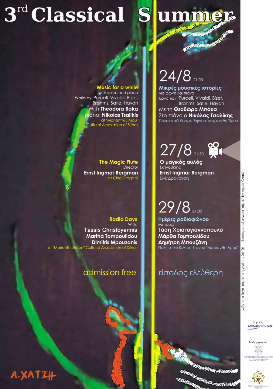 Συνδιοργάνωση: Πολιτιστικός Σύλλογος Σίφνου, Πολιτιστικό Κέντρο Σίφνου «Μαριάνθη Σίμου