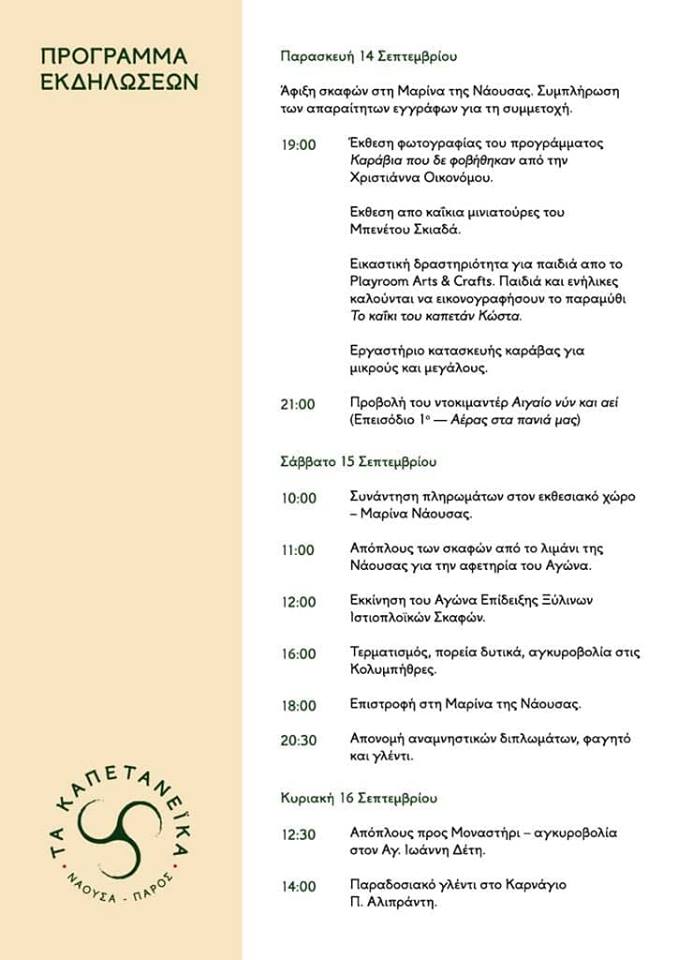Είθε “Τα Καπετανέικα” να είναι η γιορτή των ξύλινων σκαριών, οργανωμένη για ανθρώπους της θάλασσας, τους λάτρεις και υποστηρικτές του ξύλινου πανάδικου με όσες χαρές και βάσανα αυτό περικλείει!